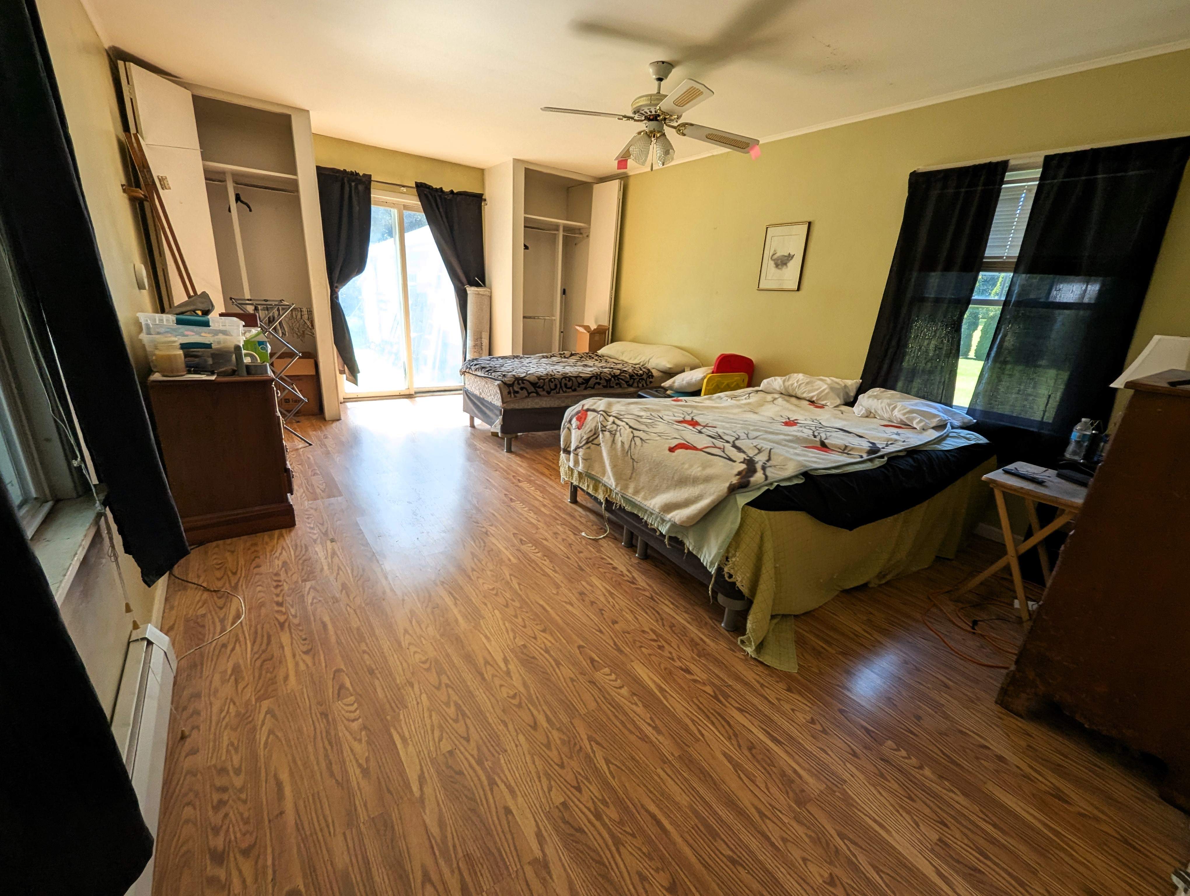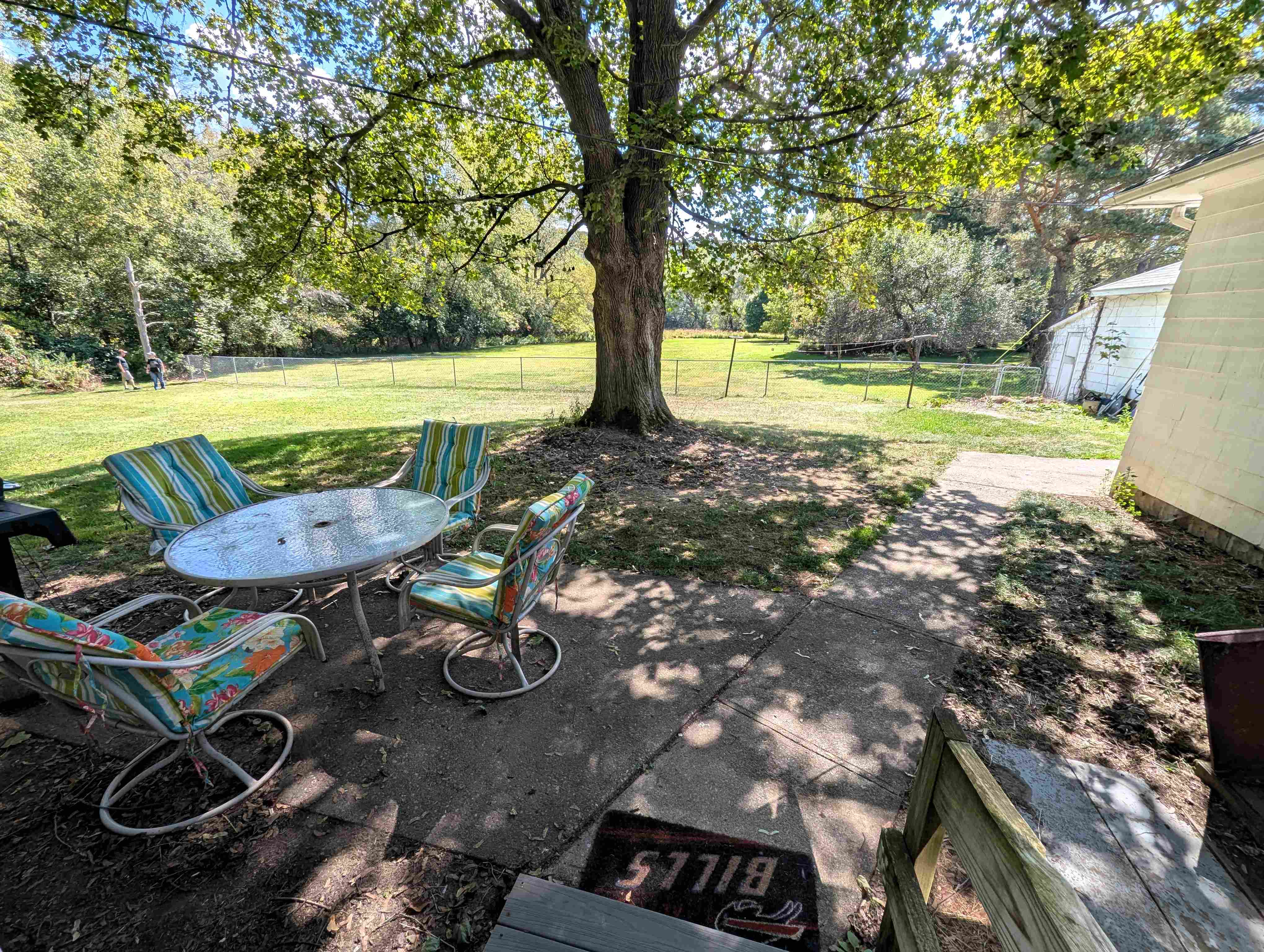 The backyard stretches nearly 400 feet, leading to a creek and a wooded area.