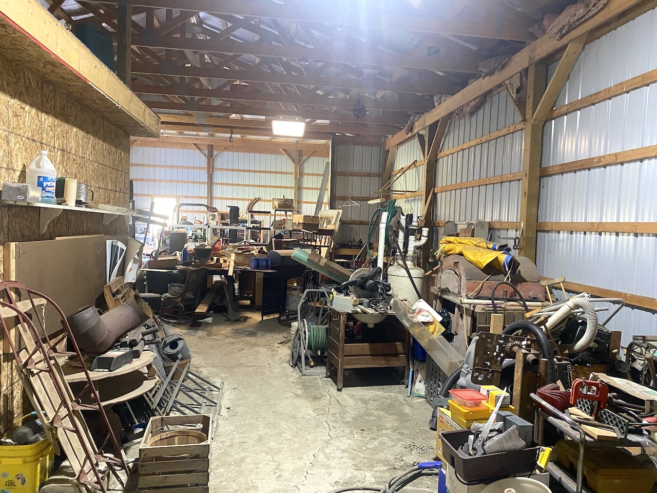 The impressive pole barn has a concrete floor, electric service, its own office area, and a large open workspace. The barn is well-suited for a wide range of uses including business operations, storage, or workshop space. Access is easy from County Road 2 leading to a spacious parking area and open meadow. Fiber optic service is available at the roadside and all rights convey.