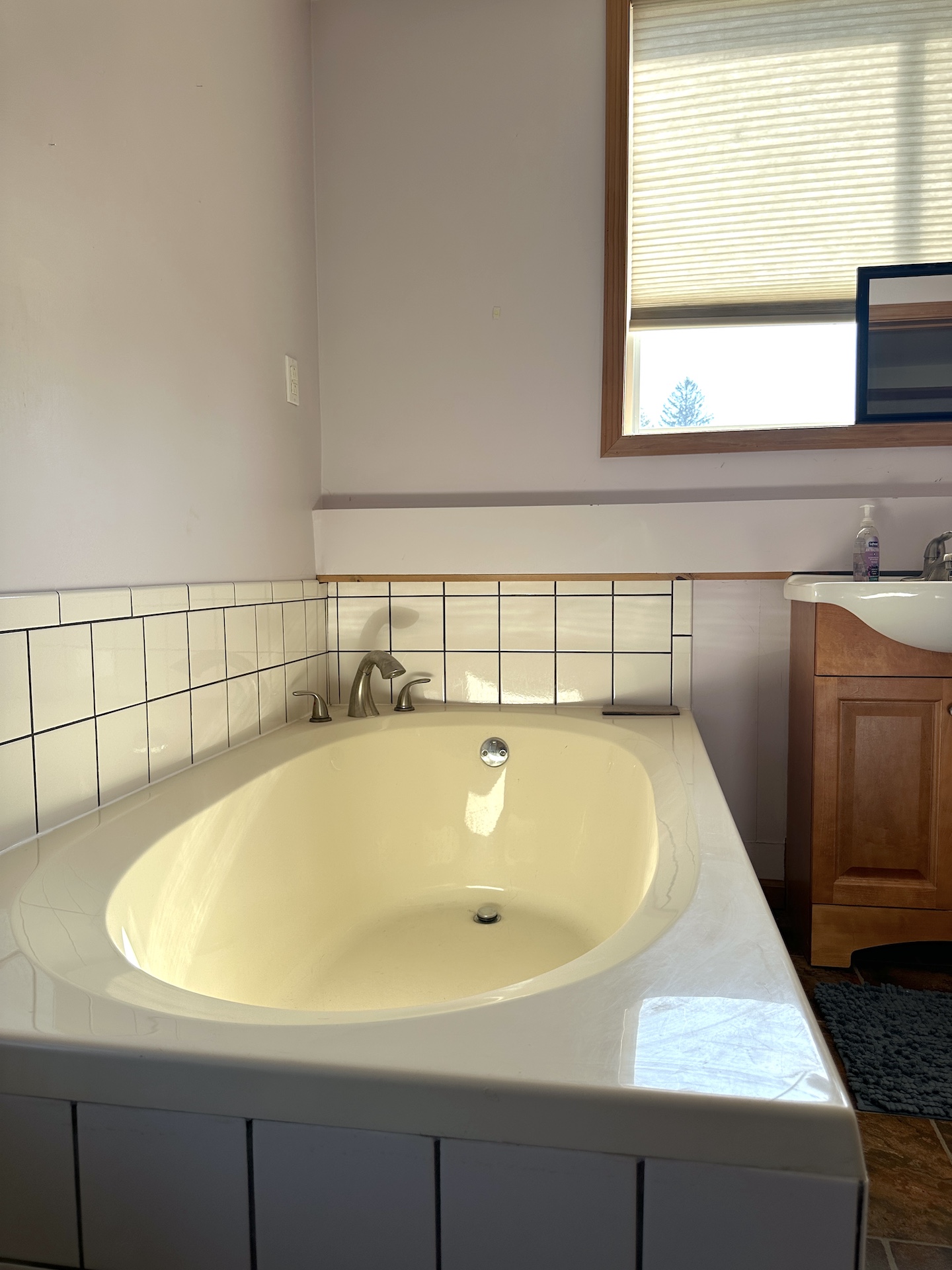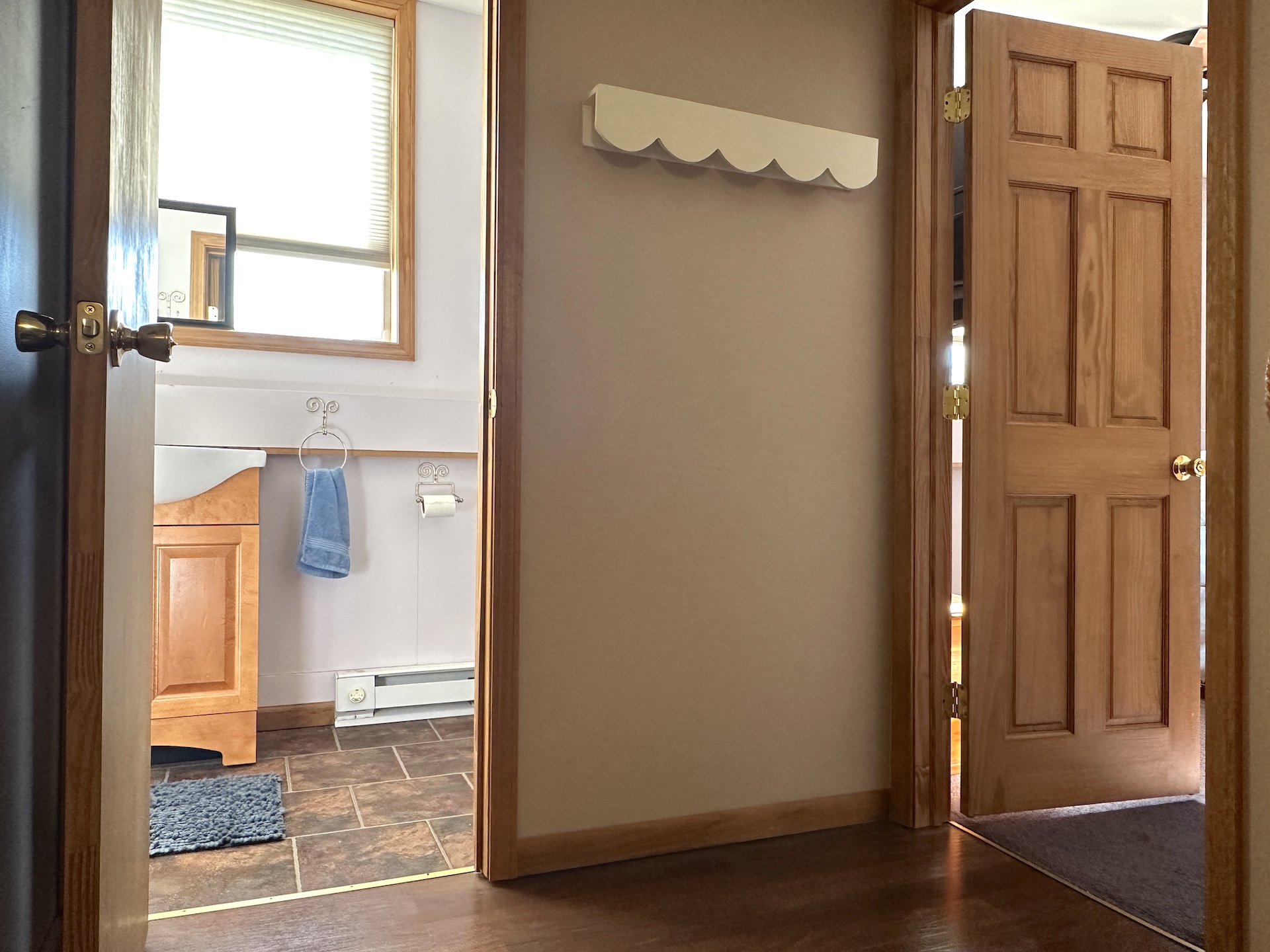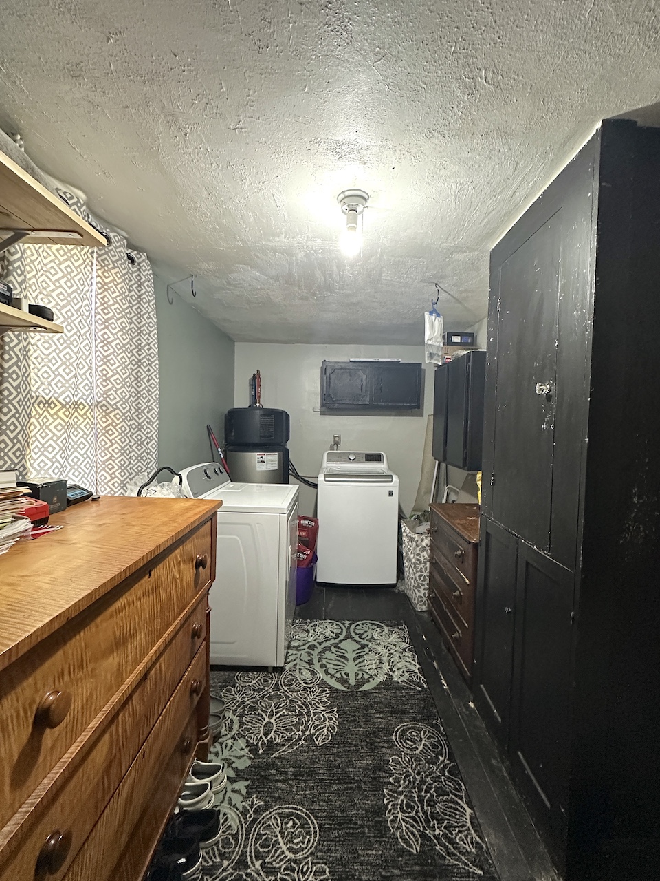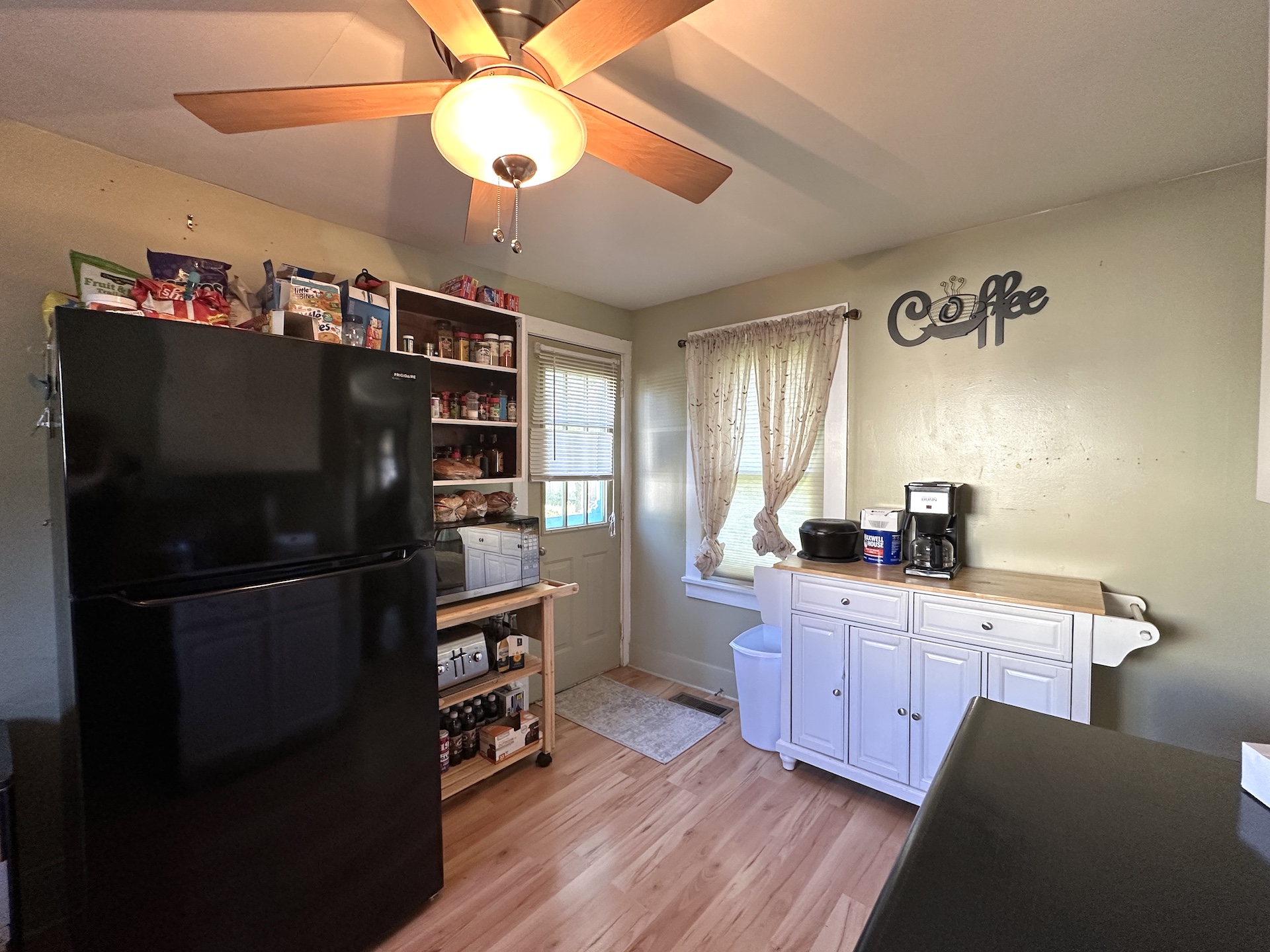 The first floor also offers a convenient bedroom and a full bath, along with a separate laundry area that provides plenty of extra storage. Upstairs, you’ll discover another comfortable bedroom paired with a full bath featuring a large soaker tub offering comfort and flexibility for family or guests.