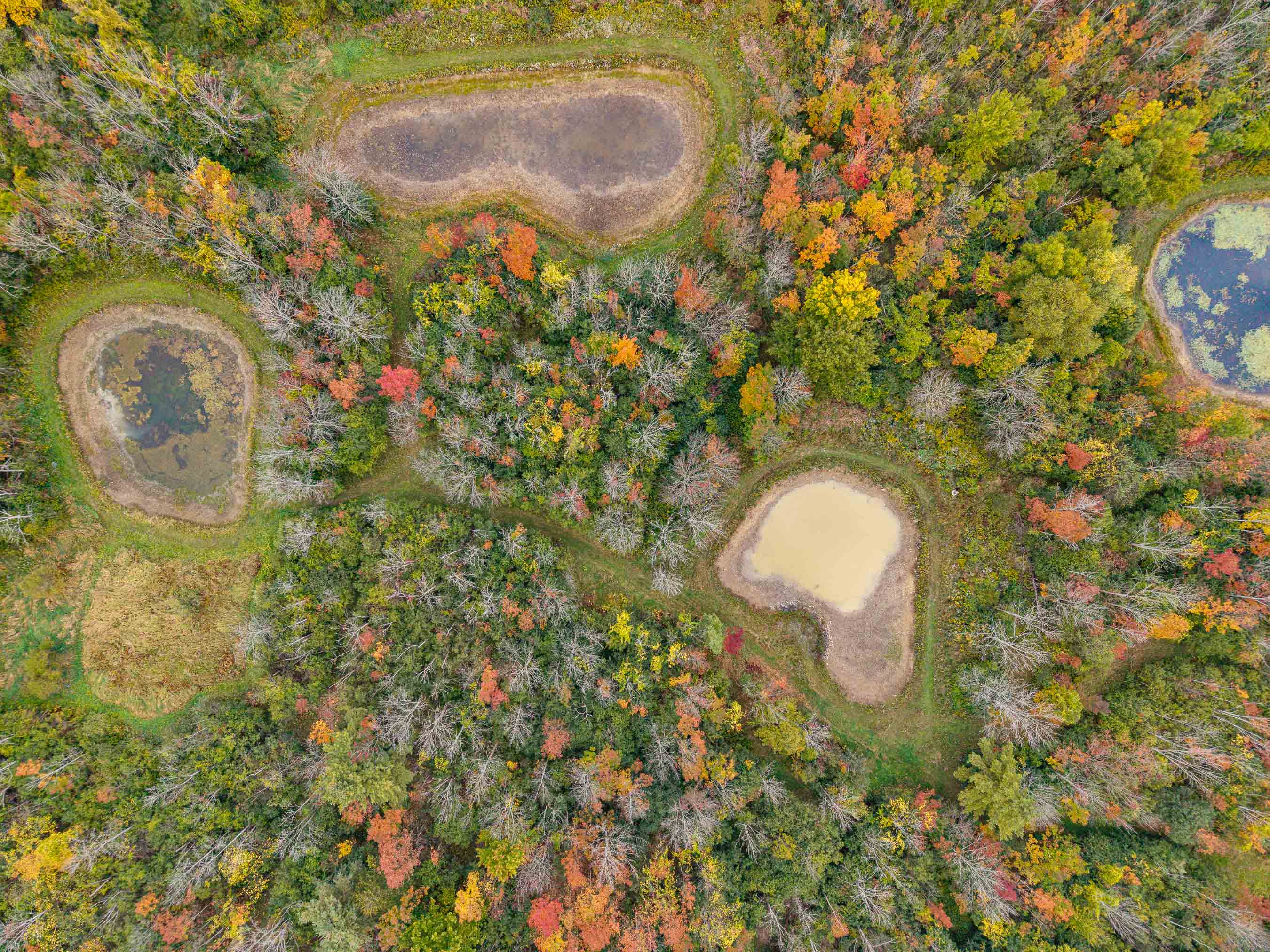 This mostly-timbered parcel features a diverse mix of hardwoods and sporadic pine including red oak, white oak, maple, ash, apple trees and other native timber species. Brush hogged trails for ATV and Side by Sides have been developed to traverse the property with ease. The terrain is easily accessed via these trails to the back of the property where you’ll discover 5, yes that’s right, 5 amazing ponds already established and well maintained. They have been cleared out recently and are thriving; drawing the attention of waterfowl, whitetail deer, turkeys and other wildlife.