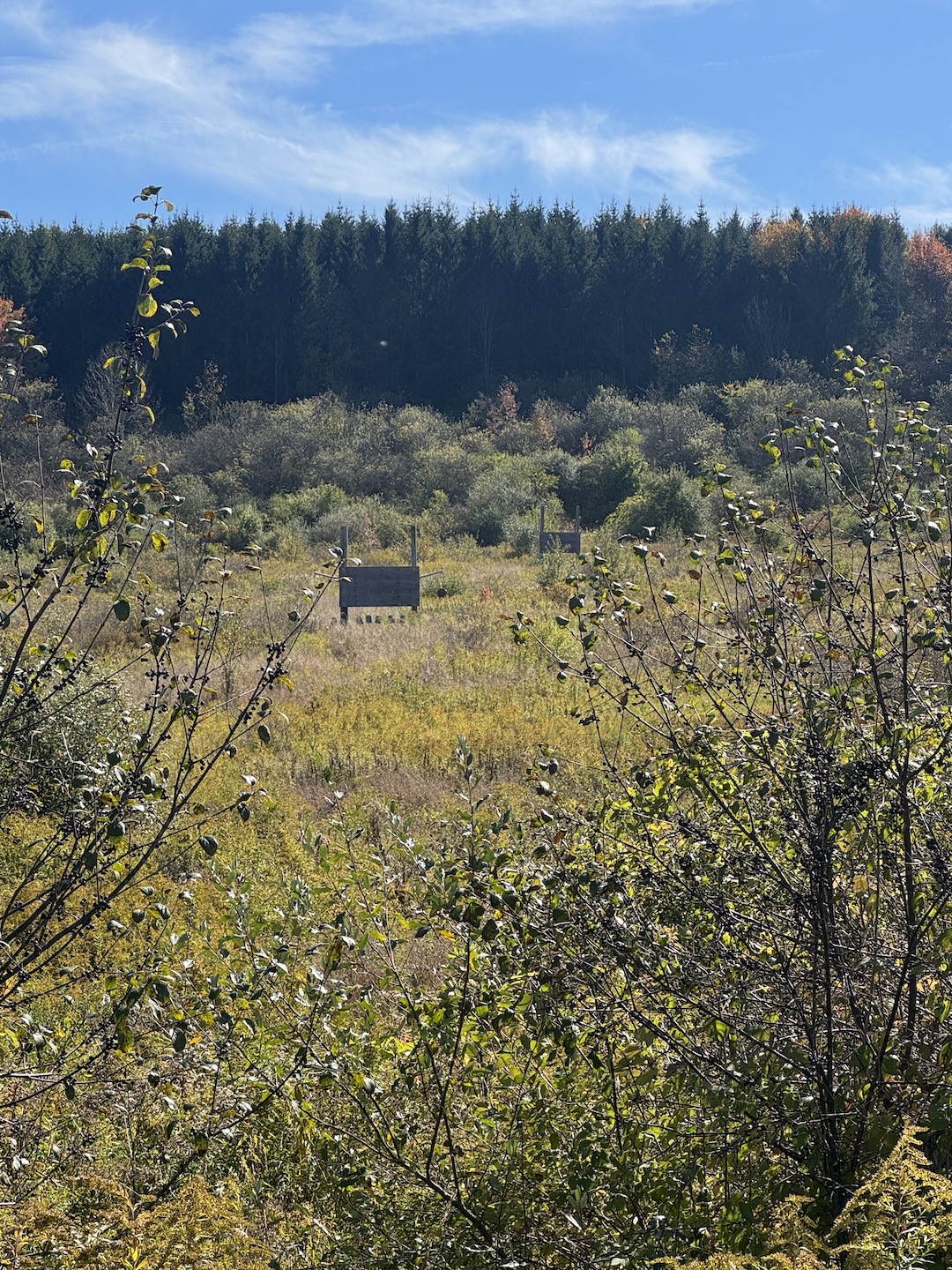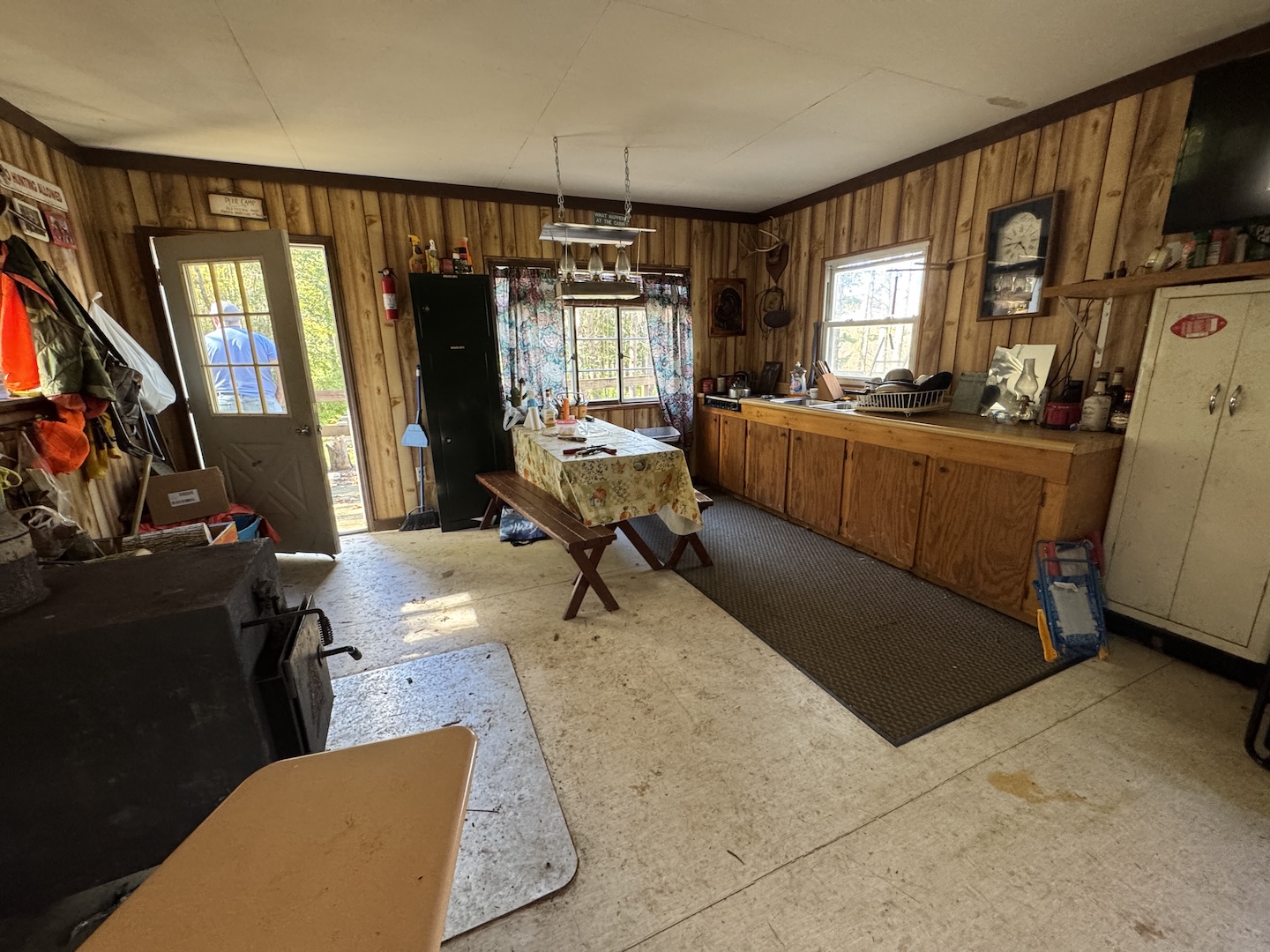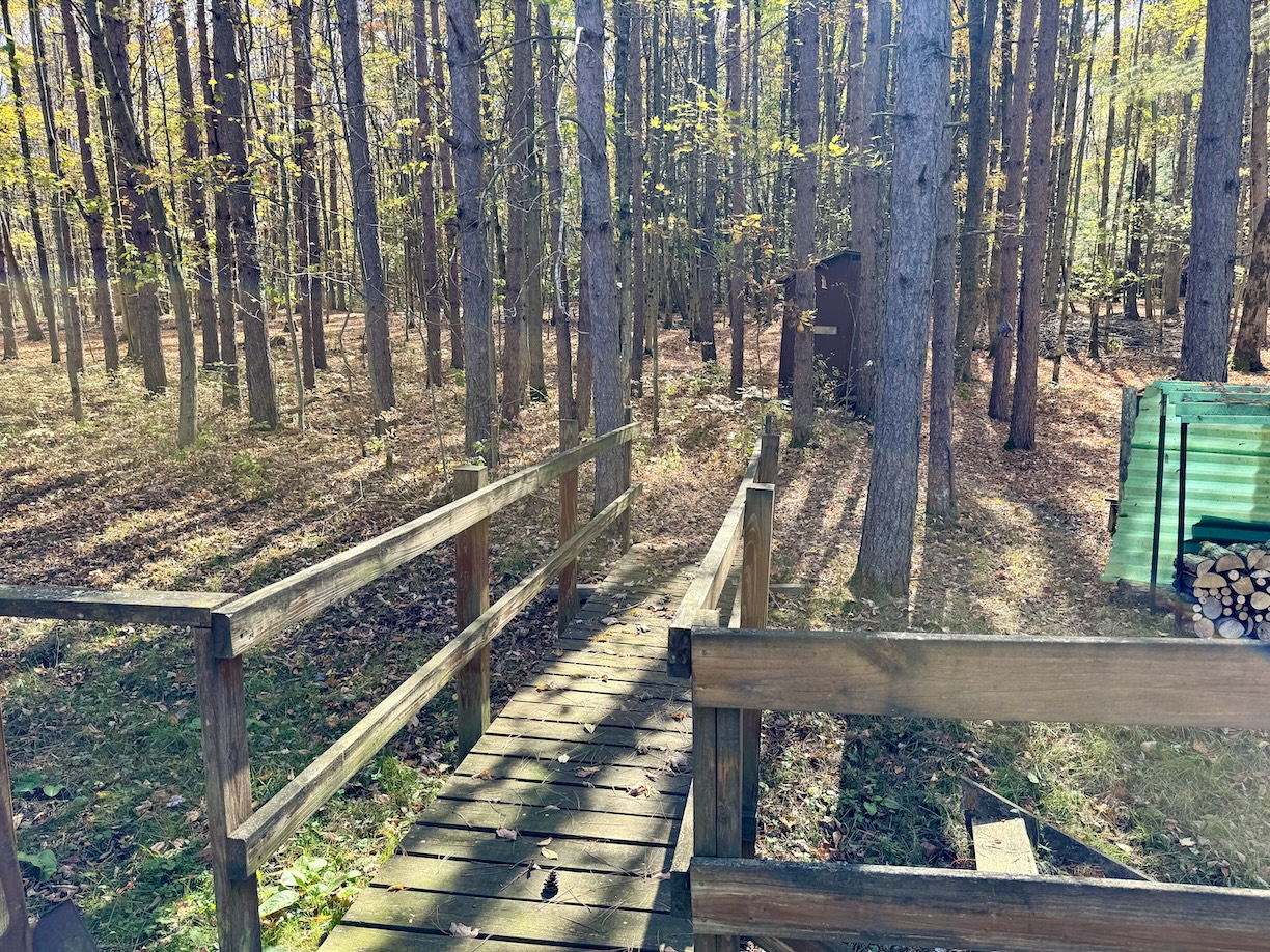 The wooded area features a well-maintained trail leading to a small off-grid hunting cabin that can be powered by a generator for electricity and propane for the cooking stove. There is a wood stove that provides heat. Electric and high-speed internet are available right at the road if you wish to connect in the future.