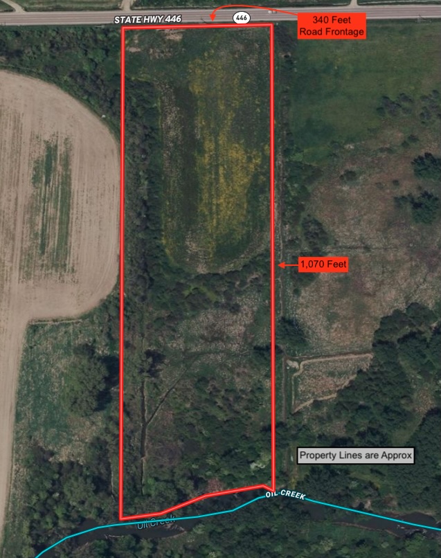 The land is completely level with a mixture of open land, shrubs, some hardwoods, and has 340 feet of road frontage. Electric is located at the road. There is an open field in the front of the property that can be used to build a nice home or cabin, or can also be used as farmland or pastureland. The back of the property borders Oil Creek which is a stocked stream and is great for fishing. Great hunting property as well with whitetail deer sign throughout. Annual taxes are $240.60. Located in the Cuba-Rushford School District. All rights convey.