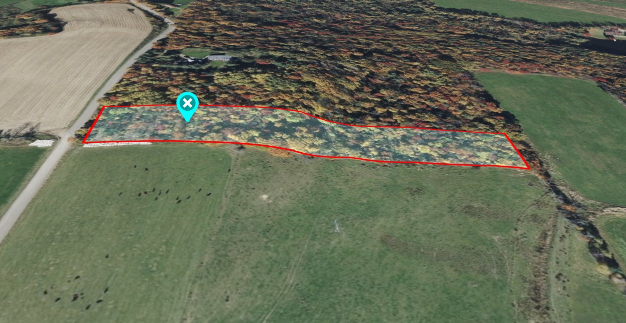 There is an existing driveway entrance with a culvert pipe, approved septic system permit, and an established house number. As you enter the property from the road’s edge, you are greeted with open hardwoods consisting of oak and cherry with some pine trees.