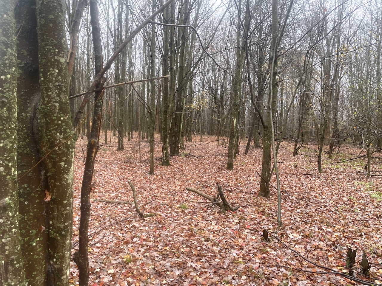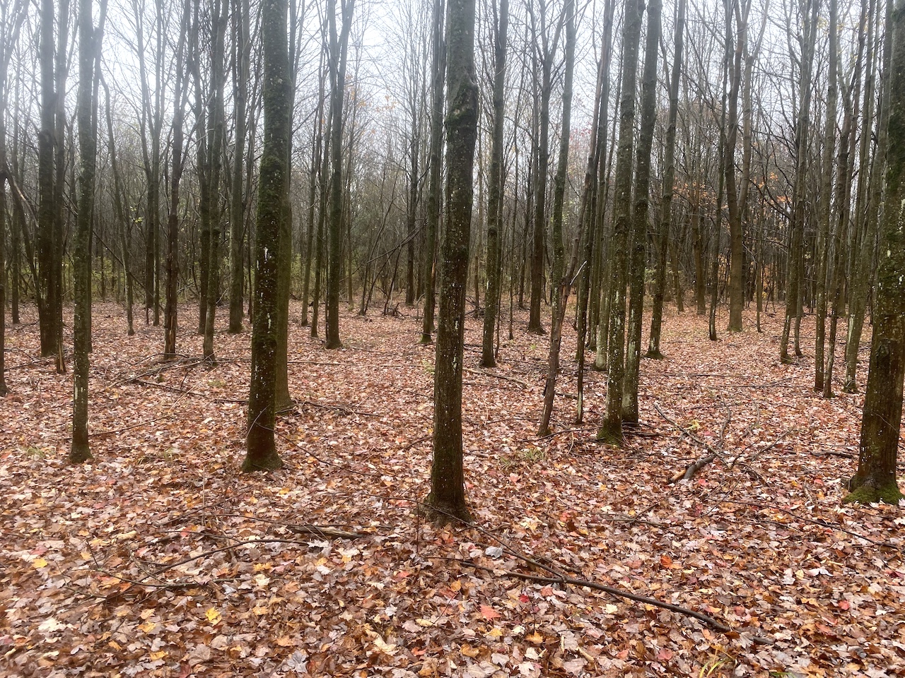 Located off Gillies Hill Road, this secluded acreage offers a quiet setting surrounded by hardwood and softwood trees with dense brush providing cover for wildlife. Whitetail deer signs are visible throughout the property. A gravel driveway leads to an off-grid building site or a place to park a camper. Access is provided by a deeded easement. All rights and the existing survey convey with the sale.