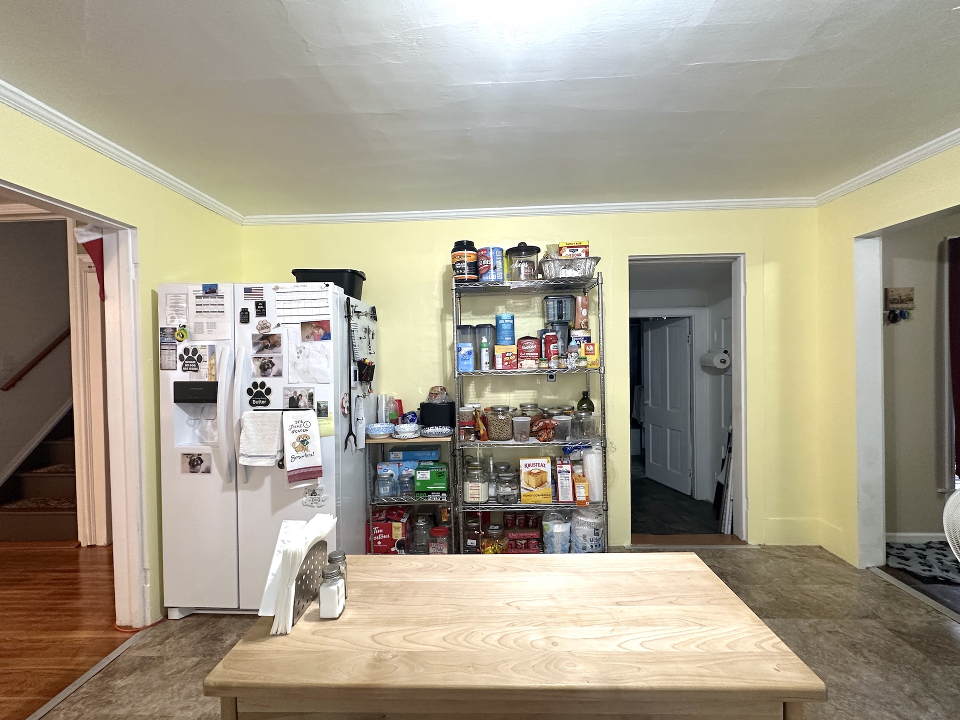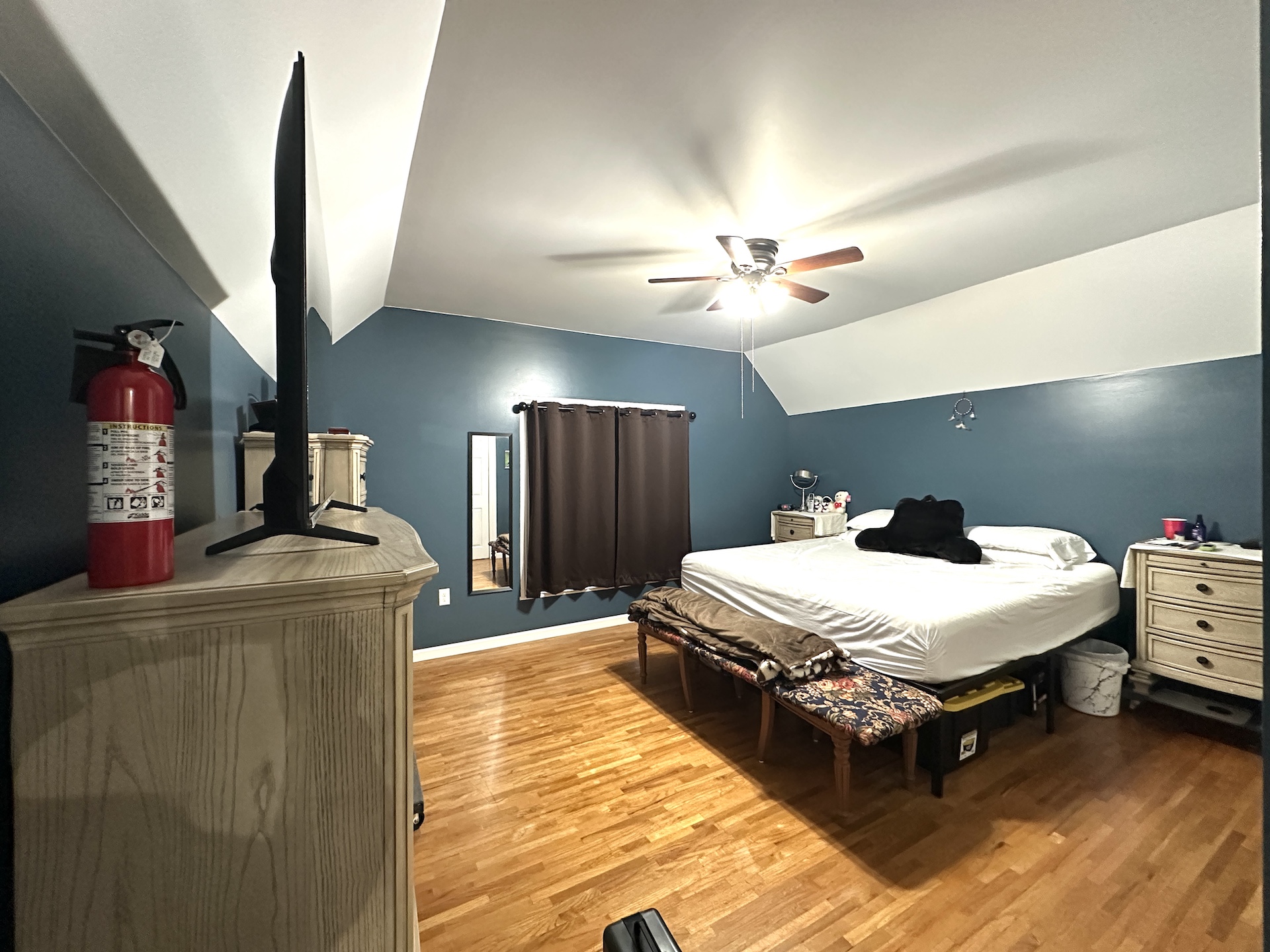 The upper level features two generously sized bedrooms with ample closet space, along with a spacious landing that can serve as a cozy reading nook, study corner, or flexible sitting area. Hardwood floors throughout the home add warmth and timeless character.