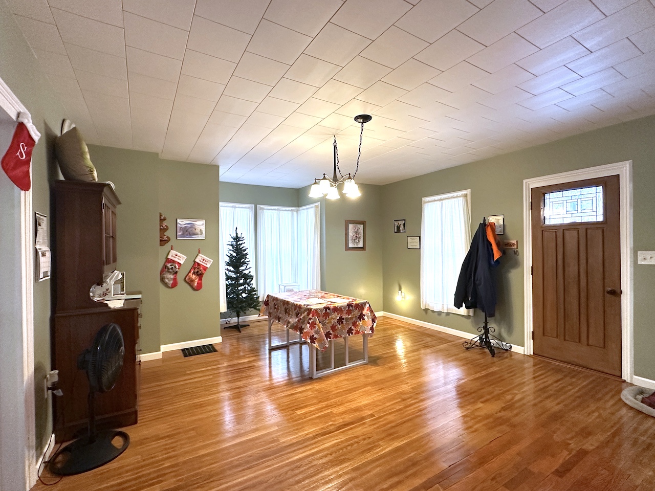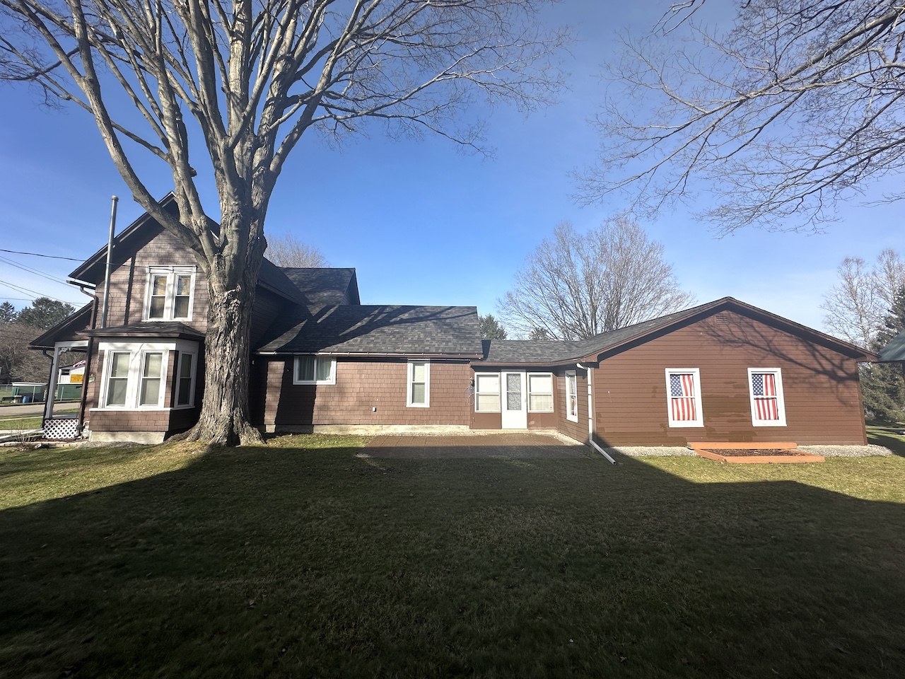This home offers a wonderful blend of comfort, convenience, and scenic surroundings. Enter the home through the rear breezeway into a large mudroom-laundry area perfect for storing coats, boots, and everyday gear. Just off the breezeway, step out onto a relaxing patio, ideal for outdoor dining. The kitchen flows effortlessly into a comfortable dining area highlighted by a bay window which then opens to a warm and inviting living room perfect for family gatherings. A bedroom and a full bath complete the main level and provide convenient first-floor living.