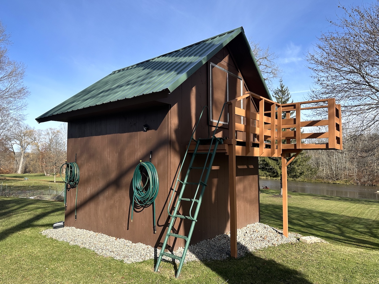 Outside, enjoy tranquil views of the Genesee River from your backyard, an ideal setting for bonfires, relaxation, and play. The property also includes a garden shed with a second-story playhouse for added charm. A blacktop driveway provides plenty of parking and leads to the attached 2-car garage.