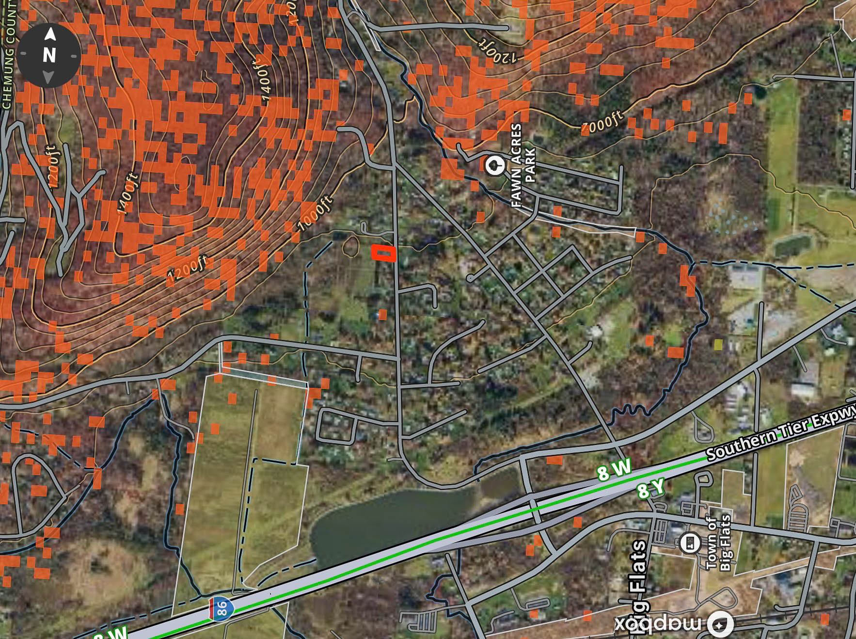 The lot is situated in an established community with easy access to I86 for travel west to Corning or east to Horseheads and Elmira.