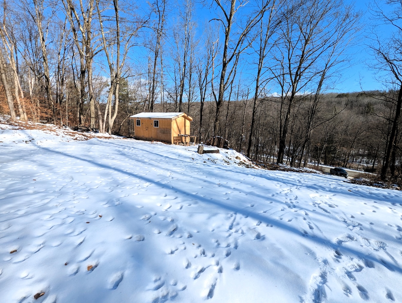 Situated along a quiet paved road, this completely wooded property offers an excellent setting for a camp, cabin, or full-time residence. A newer gravel driveway provides gated access to a level clearing, creating a ready-to-use building site with utilities conveniently located across the street. Additional improvements include a small generator shed and a larger storage shed for keeping you and your gear dry between outdoor adventures.