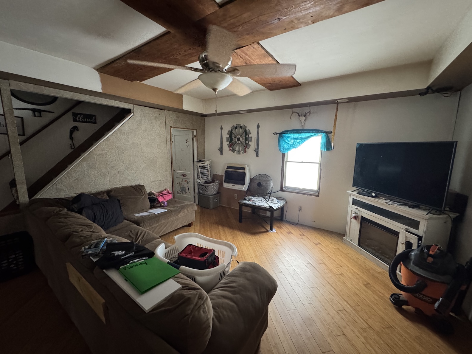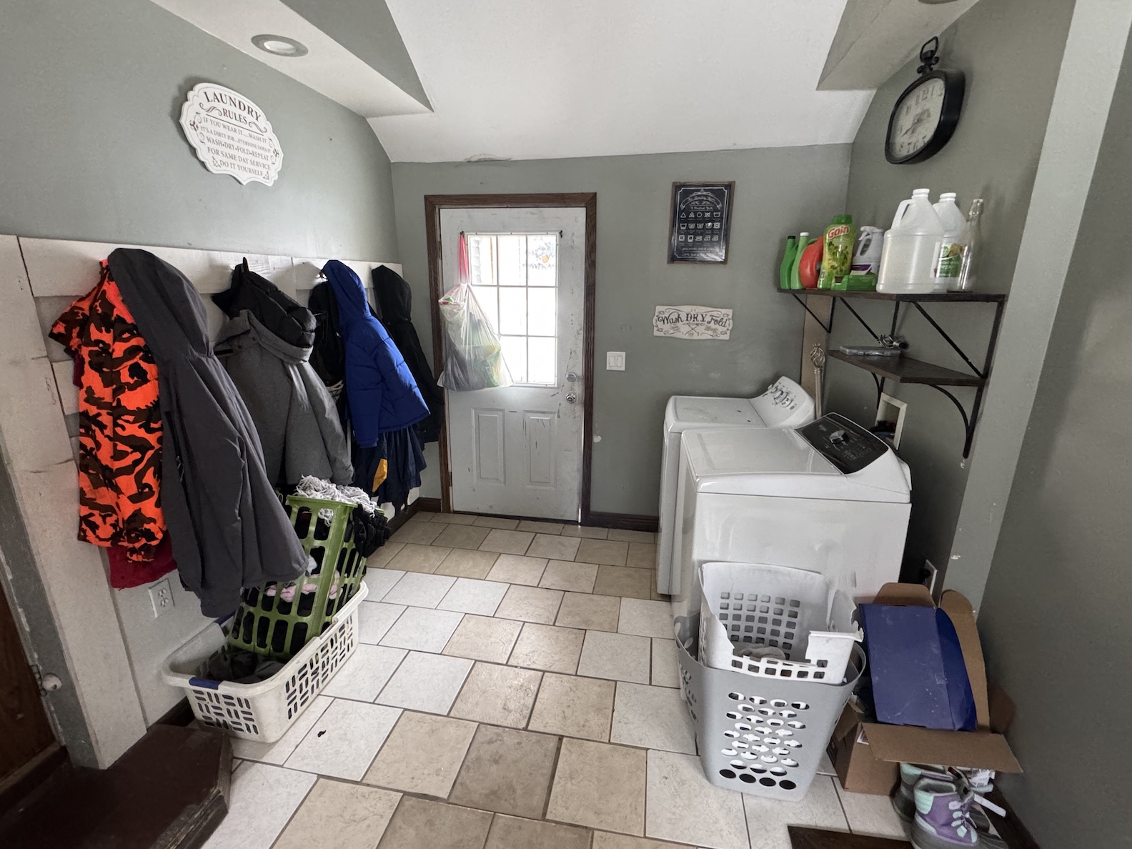 Step inside through the combined mudroom and laundry area designed for everyday practicality. The open-concept living space is filled with natural light and flows seamlessly into the kitchen, which features hardwood cabinetry and laminate countertops.