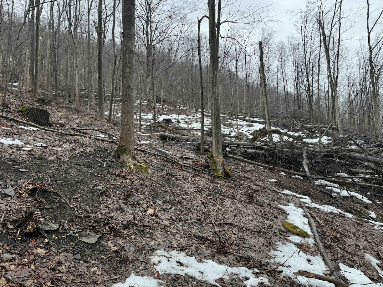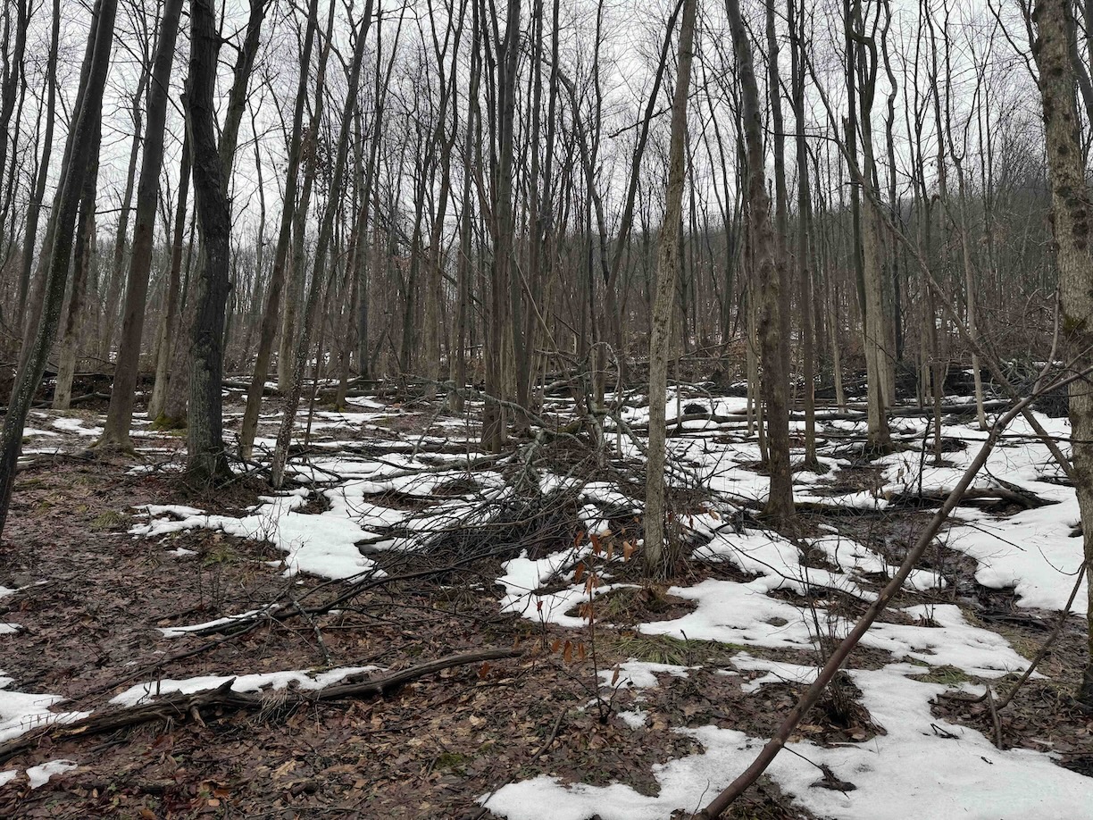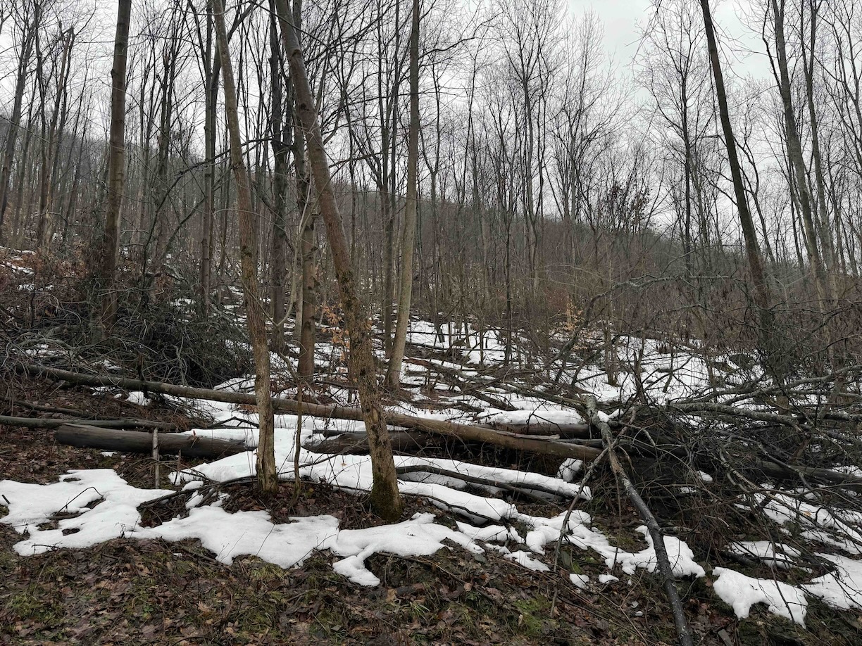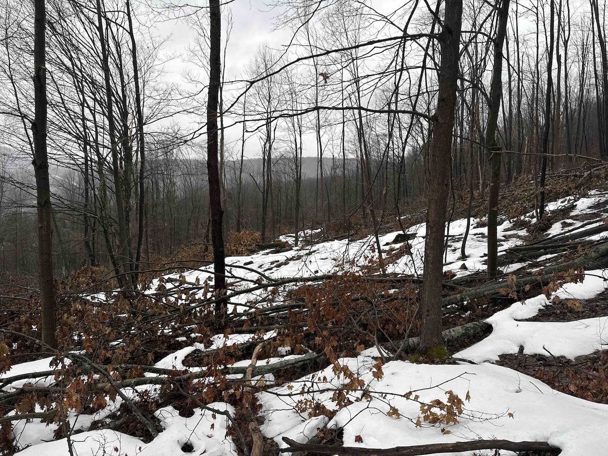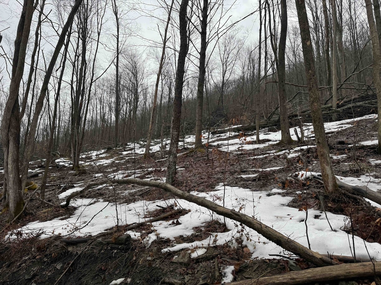 The land is mostly wooded with hardwoods and the terrain has an upward slope throughout most of the property. There is a clearing upon entrance that could be used to build a home, cabin or even set up a trailer. The property is currently being logged. The loggers are almost done but due to the weather, they cannot finish until early or late spring. The seller will sign a notice of intent but will not close on the property until the logging is completed to make sure the buyer is happy. The trailers on the property will be removed prior to closing. There are trails established throughout that will be cleaned up and graded prior to closing for easy access. The driveway onto the property is a right-of-way from the neighboring property. Whitetail deer sign throughout. Nice opportunity to get the property at a decent price, and with the right management, the forest will grow back in no time. All rights convey.