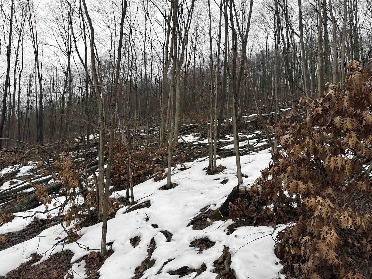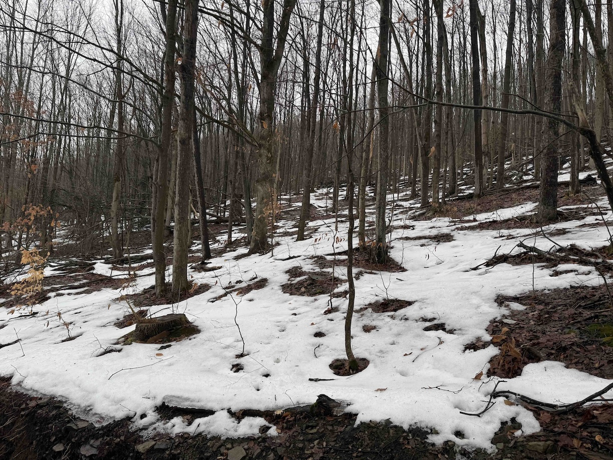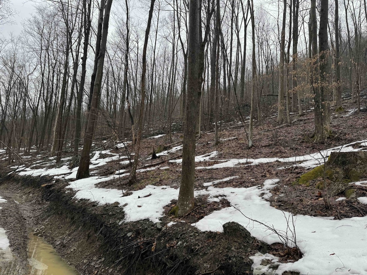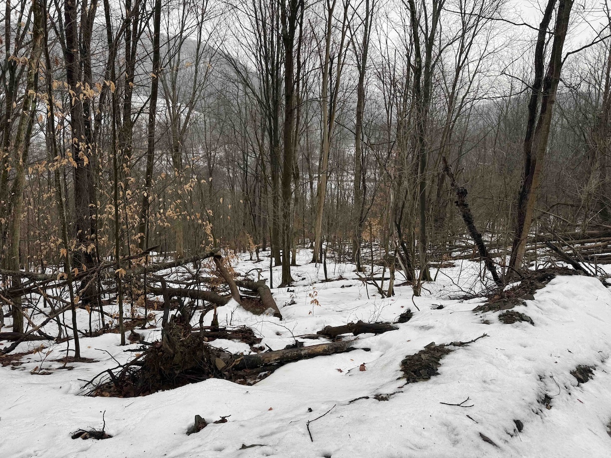 The land is mostly wooded with hardwoods and the terrain has an upward slope throughout most of the property. There is a clearing upon entrance that could be used to build a home, cabin or even set up a trailer. The property is currently being logged. The loggers are almost done but due to the weather, they cannot finish until early or late spring. The seller will sign a notice of intent but will not close on the property until the logging is completed to make sure the buyer is happy. The trailers on the property will be removed prior to closing. There are trails established throughout that will be cleaned up and graded prior to closing for easy access. The driveway onto the property is a right-of-way from the neighboring property. Whitetail deer sign throughout. Nice opportunity to get the property at a decent price, and with the right management, the forest will grow back in no time. All rights convey.