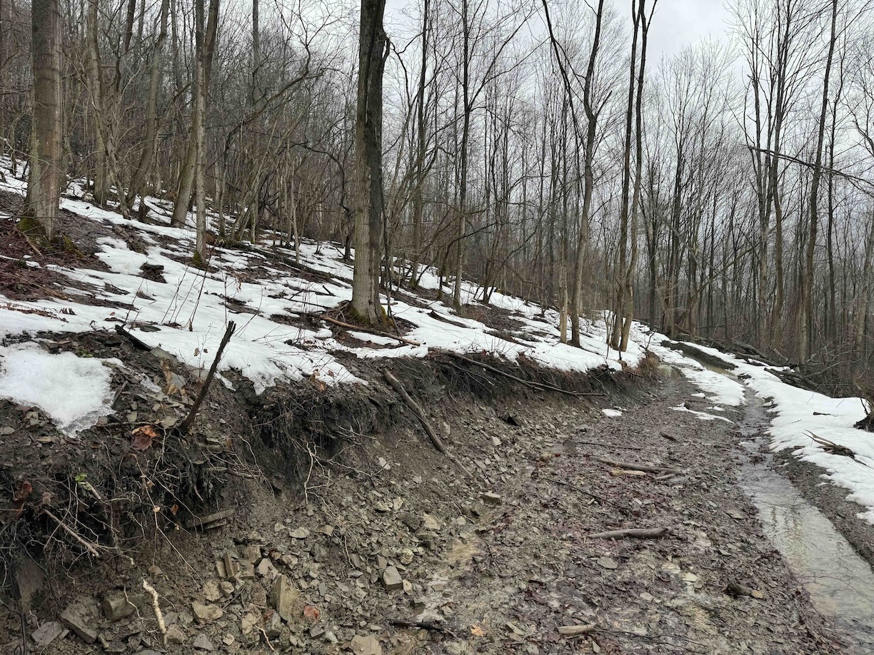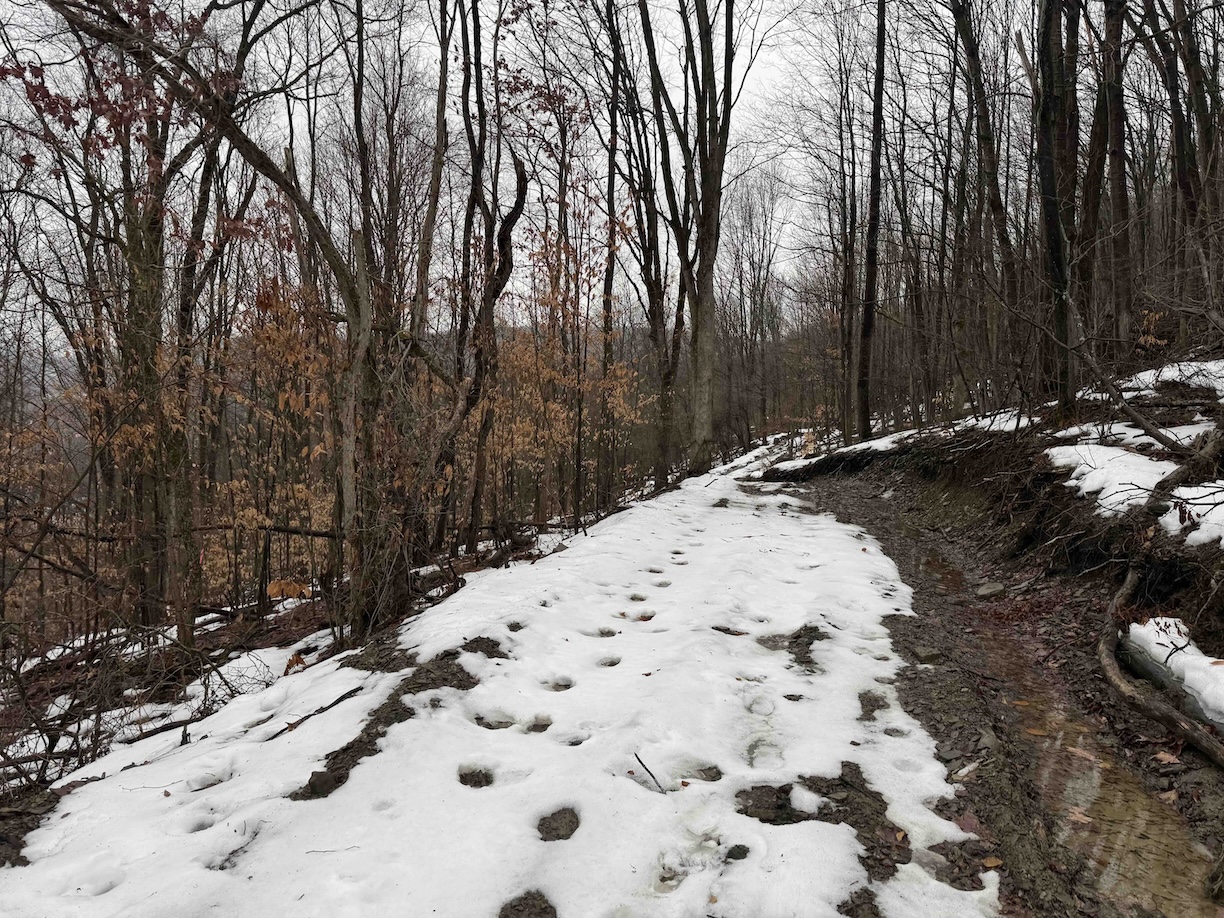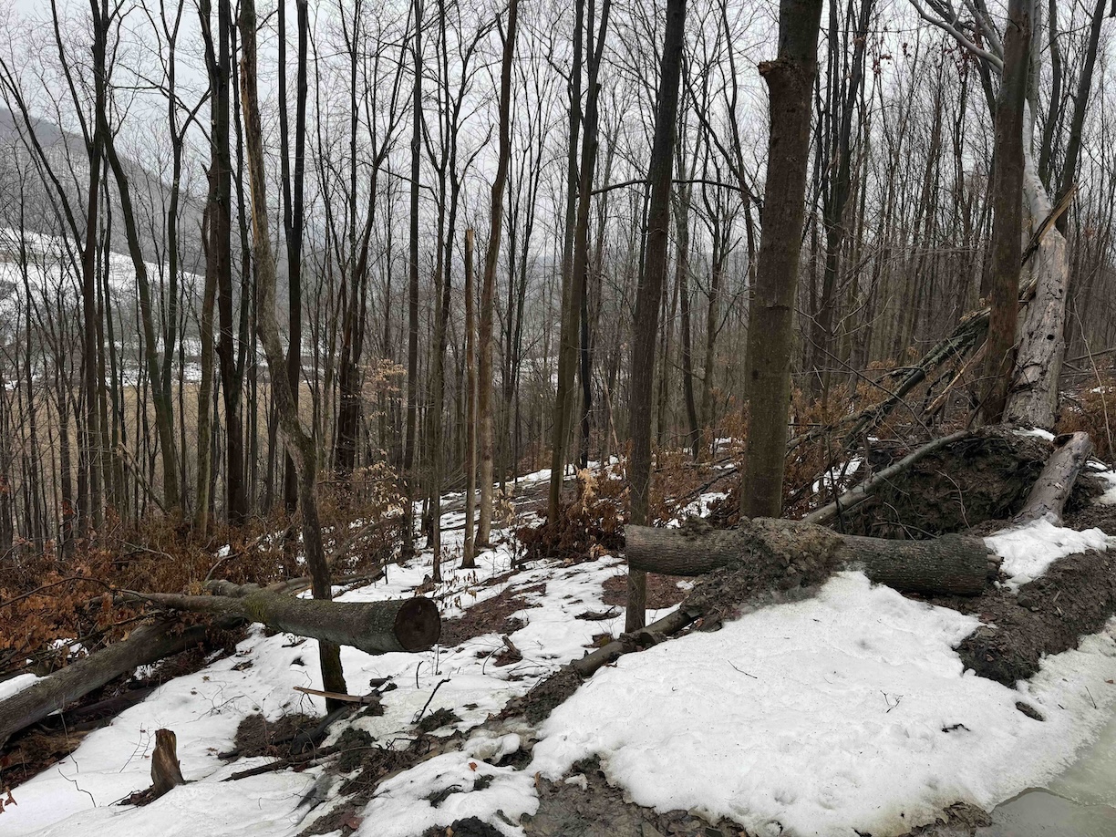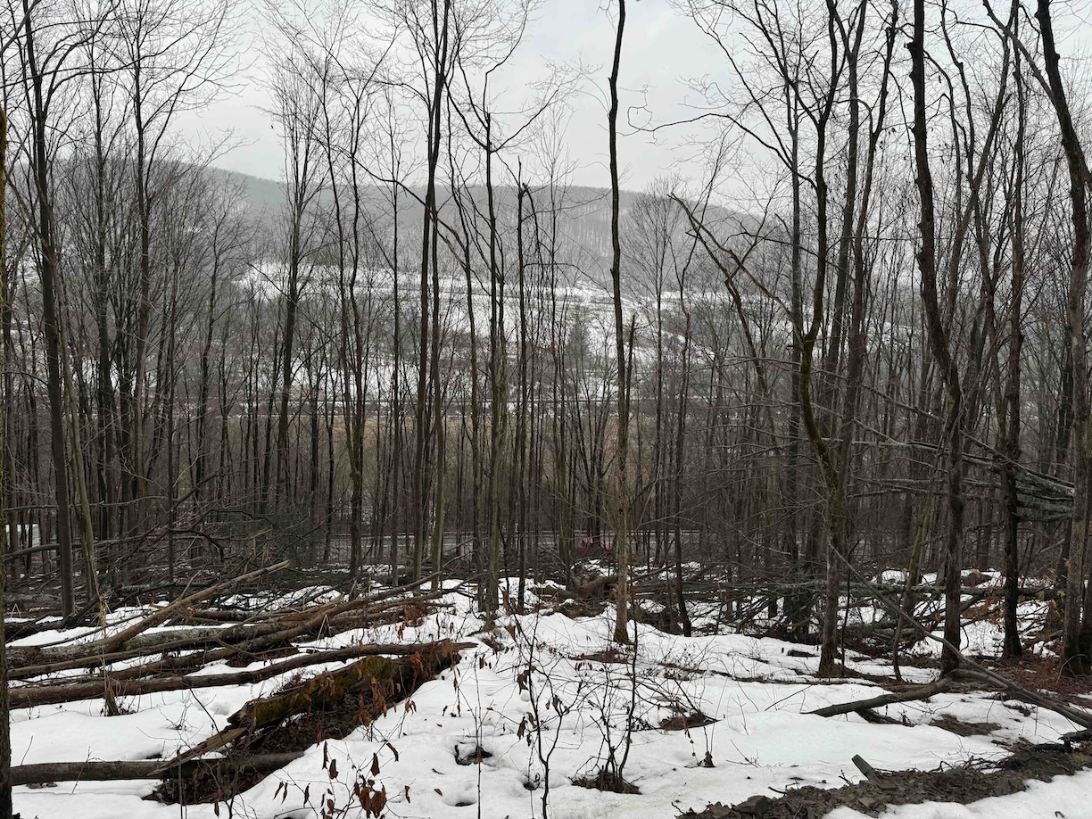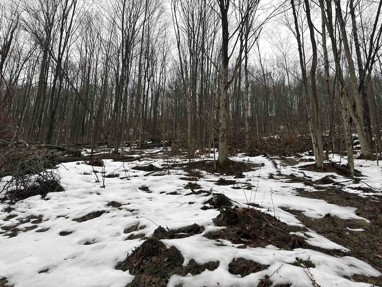 The land is mostly wooded with hardwoods and the terrain has an upward slope throughout most of the property. There is a clearing upon entrance that could be used to build a home, cabin or even set up a trailer. The property is currently being logged. The loggers are almost done but due to the weather, they cannot finish until early or late spring. The seller will sign a notice of intent but will not close on the property until the logging is completed to make sure the buyer is happy. The trailers on the property will be removed prior to closing. There are trails established throughout that will be cleaned up and graded prior to closing for easy access. The driveway onto the property is a right-of-way from the neighboring property. Whitetail deer sign throughout. Nice opportunity to get the property at a decent price, and with the right management, the forest will grow back in no time. All rights convey.