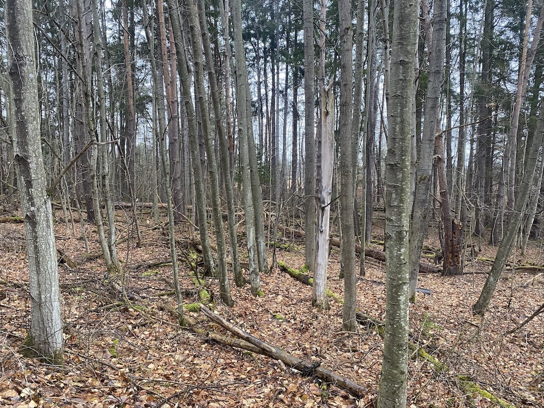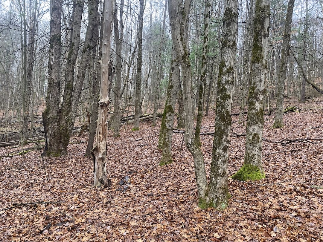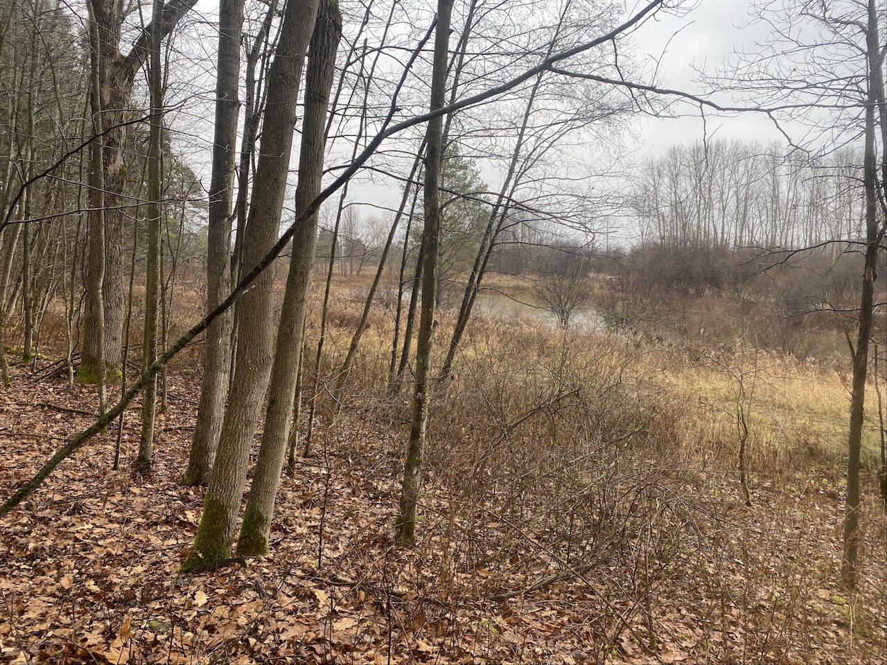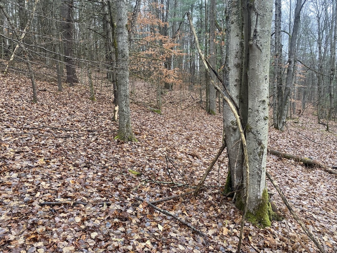 The land offers a mix of softwood and hardwood trees with abundant whitetail deer sign throughout making it well-suited for hunting and outdoor use. A large spring-fed pond sits just off the road providing easy access and a reliable water source. The land features open valley views and multiple potential sites for a home or cabin. Electric service is available at the road, and the road is maintained year-round. The area is quiet and lightly traveled. The exact acreage will be determined by a survey. All rights convey.