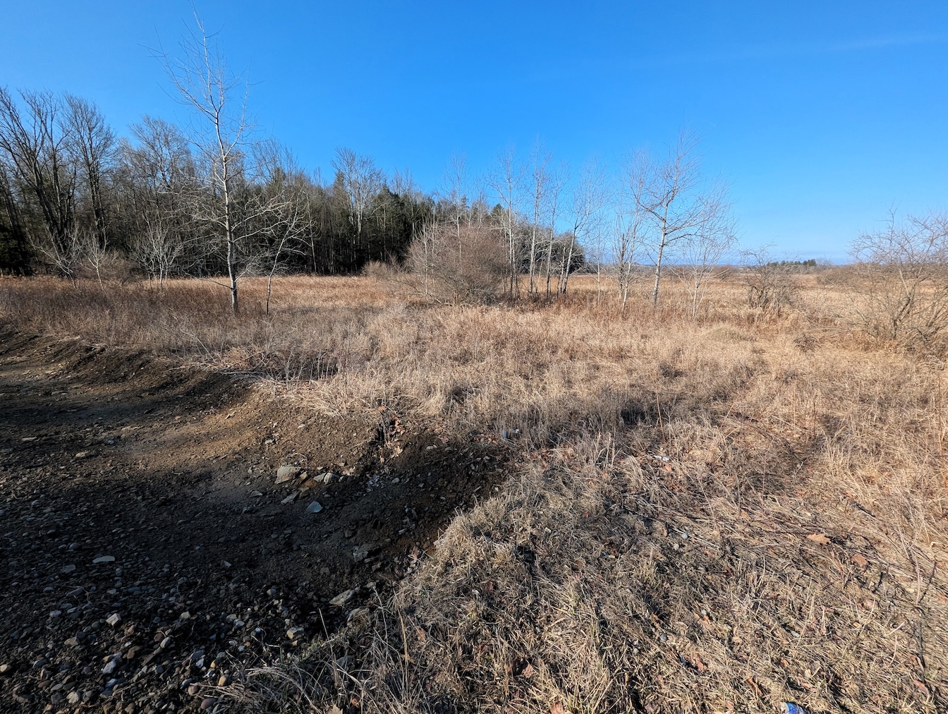 Several wet areas are scattered throughout the field including a larger low area near the road that could potentially be developed into a pond adding to the appeal of this country property. With some improvements, the open ground could also be reclaimed for farming, food plots, or pasture for livestock. The meadow provides excellent wildlife habitat consisting of goldenrod, brush, and scattered trees offering plenty of space to establish a private homesite, farmette, or recreational getaway in a peaceful rural setting.
