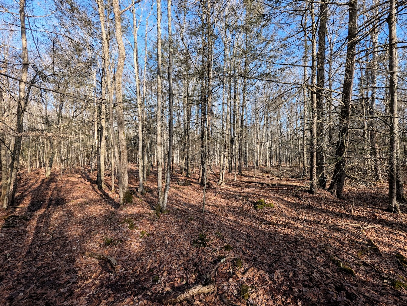 From the meadow, the land extends more than 800 feet to the back of the property and remains level throughout making it easy to develop, establish trails, or simply enjoy a walk through the land. The open field transitions to forestland in the back portion of the property offering additional space to explore and enjoy.