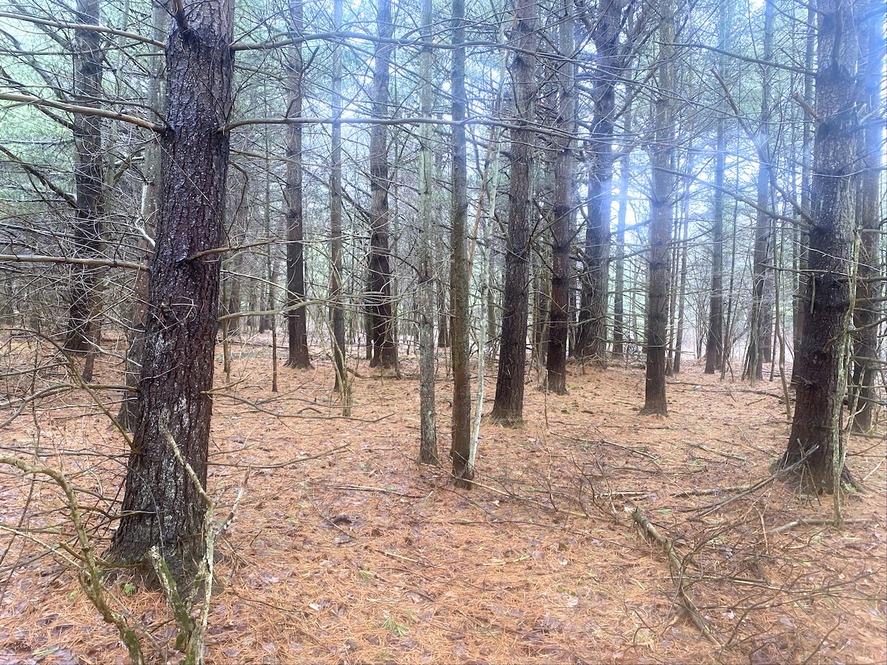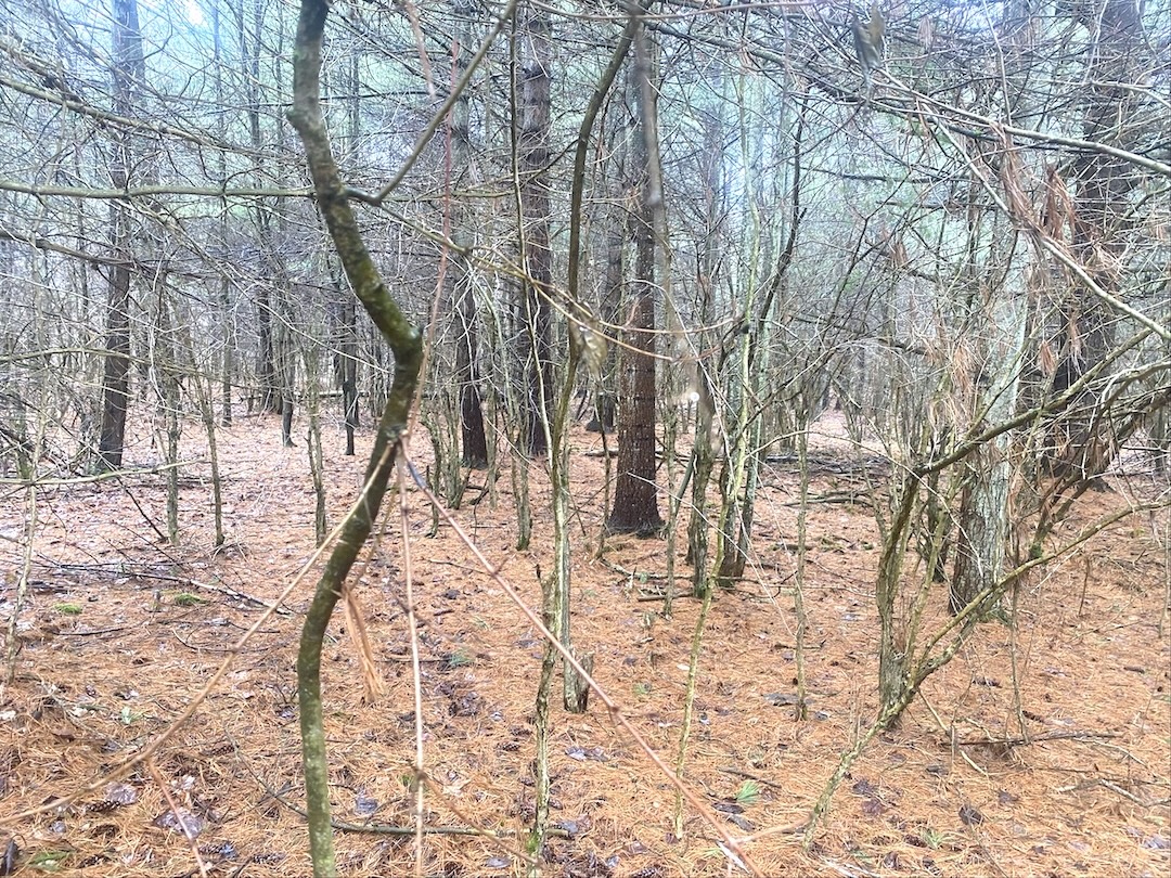 The property is being divided from a larger tract and features a mix of pine, hardwood, and softwood trees. This wooded setting offers several potential sites for a cabin or recreational use with established whitetail deer trails and other wildlife sign found throughout the property for great hunting.