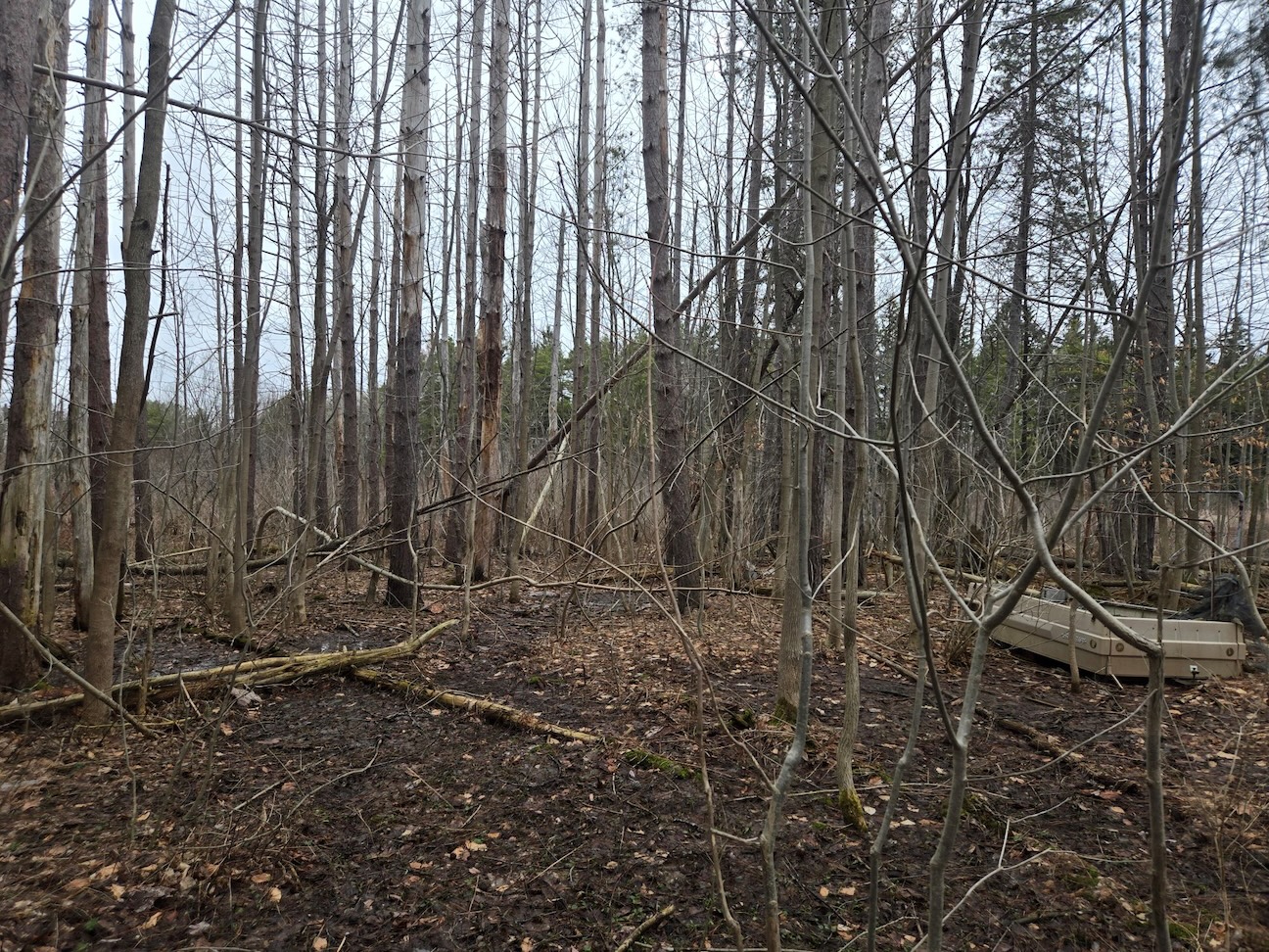 The property is mostly level and is surrounded by some farmland creating a peaceful, rural setting. It would make an excellent getaway spot for enjoying nature, as well as a great opportunity for hunting, trapping, or recreational use. Wildlife is abundant with deer, beaver, and other animals frequently seen on the property.