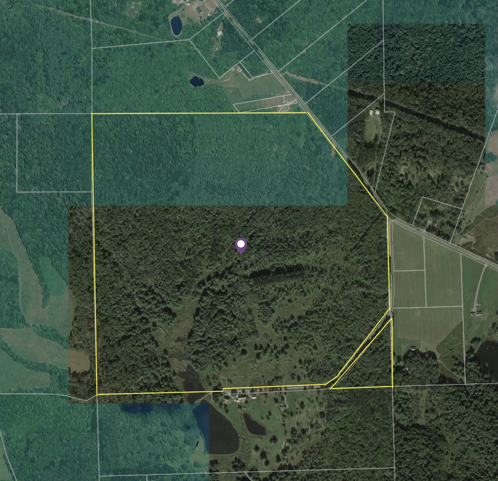 This 161 acre private country estate includes a trout stream, pond, woods, and over 1,000 yards of good road frontage on a paved road and a dirt road with power available located in Harpursville NY, Broome County.