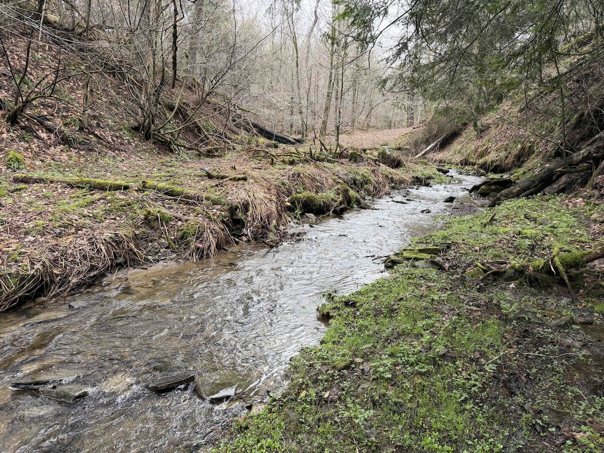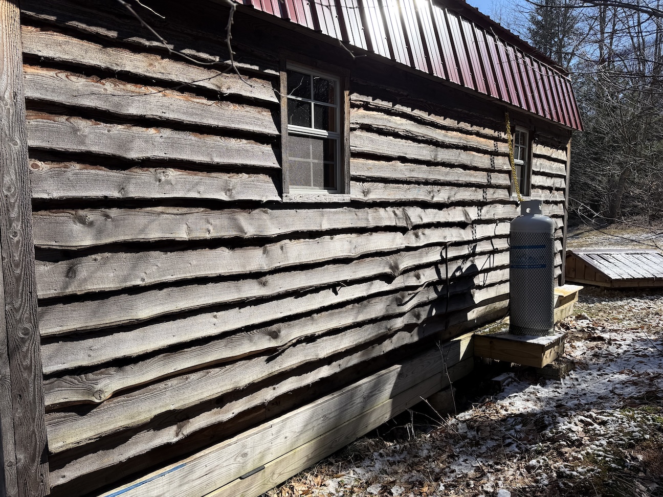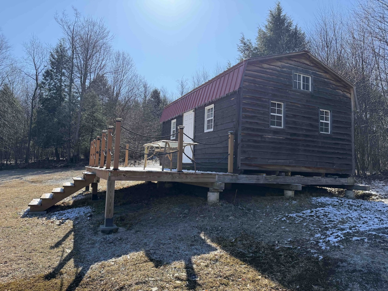 This secluded, off-grid cabin sits on 22.9 acres with a creek located in Kennedy NY, Chautauqua County.
