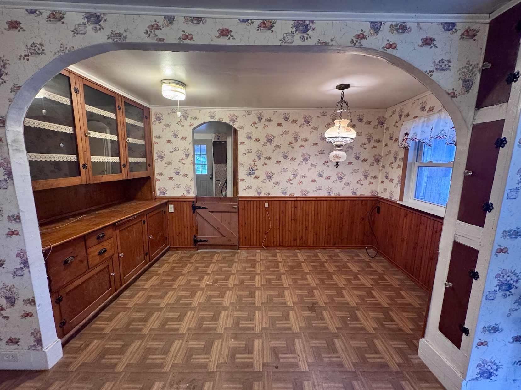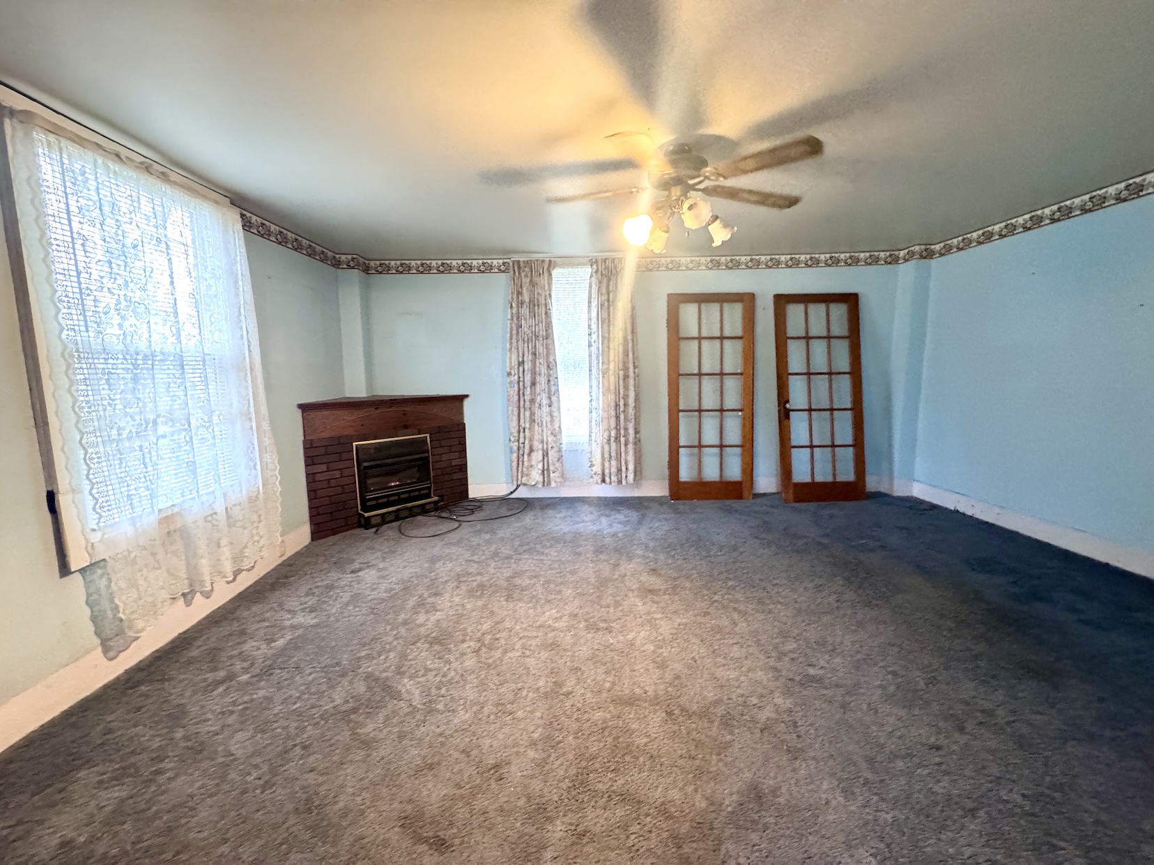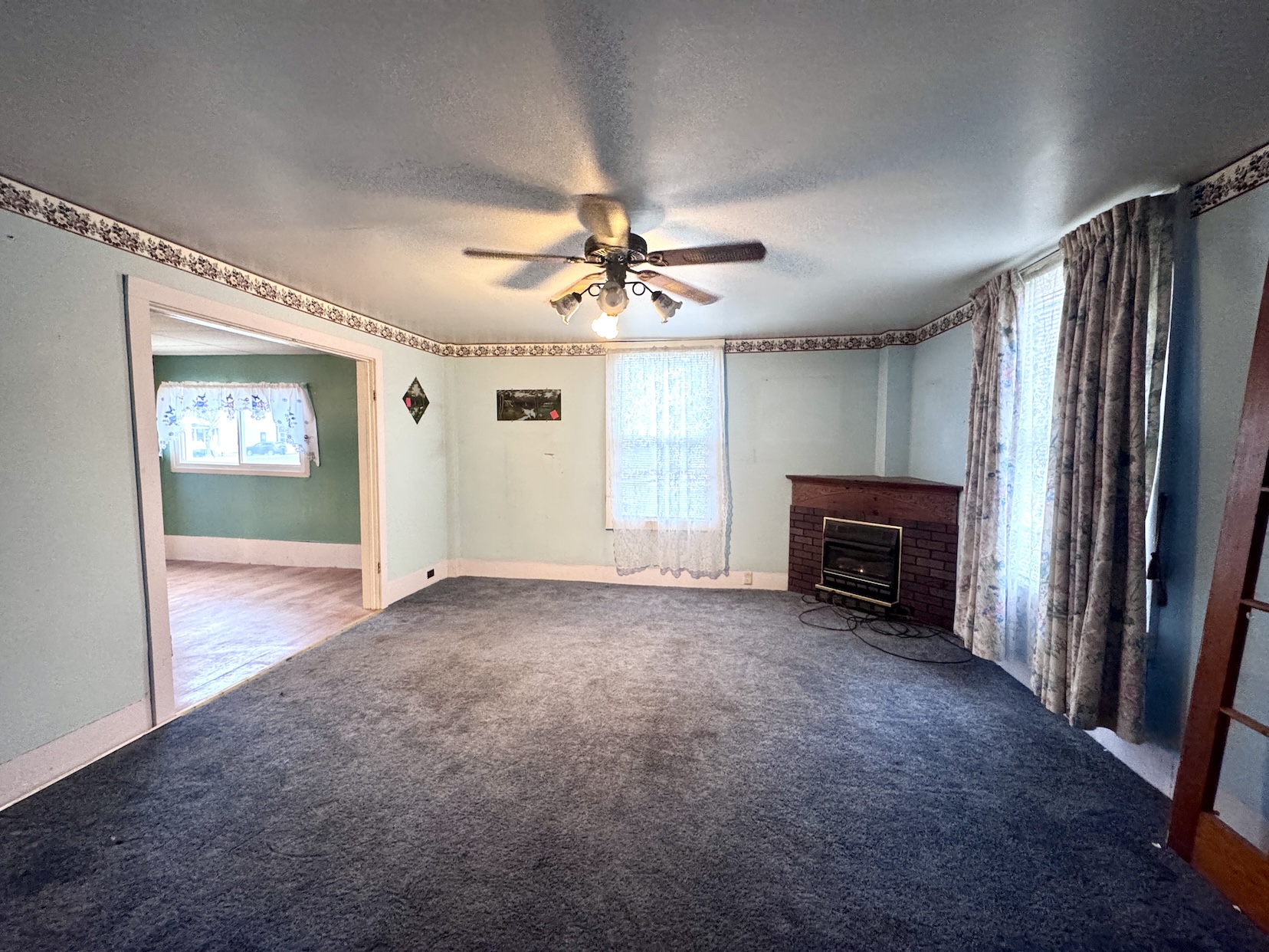 The home features a generously sized eat-in kitchen with endless potential for customization, complete with a charming breakfast nook and built-in cabinetry. Just off the kitchen, sliding glass doors lead to a newer covered porch, an ideal spot to enjoy your morning coffee while overlooking the backyard. There’s also an opportunity to add a wood or pellet stove, creating a warm inviting atmosphere.