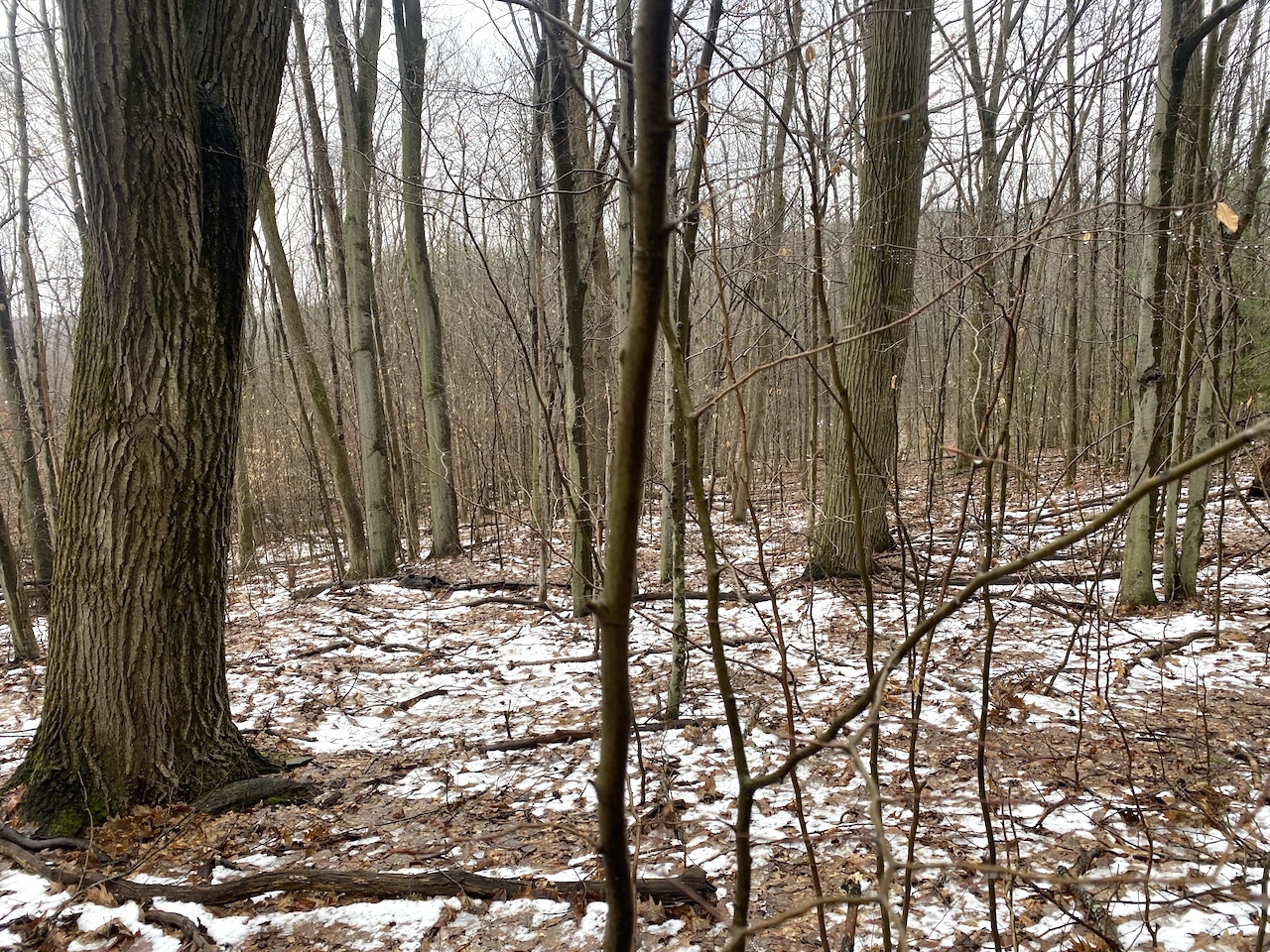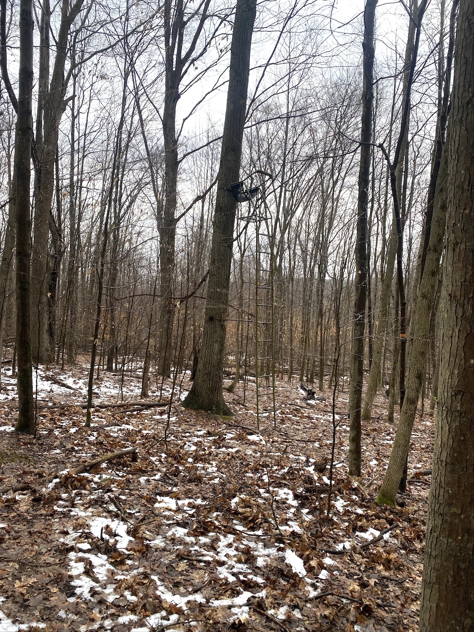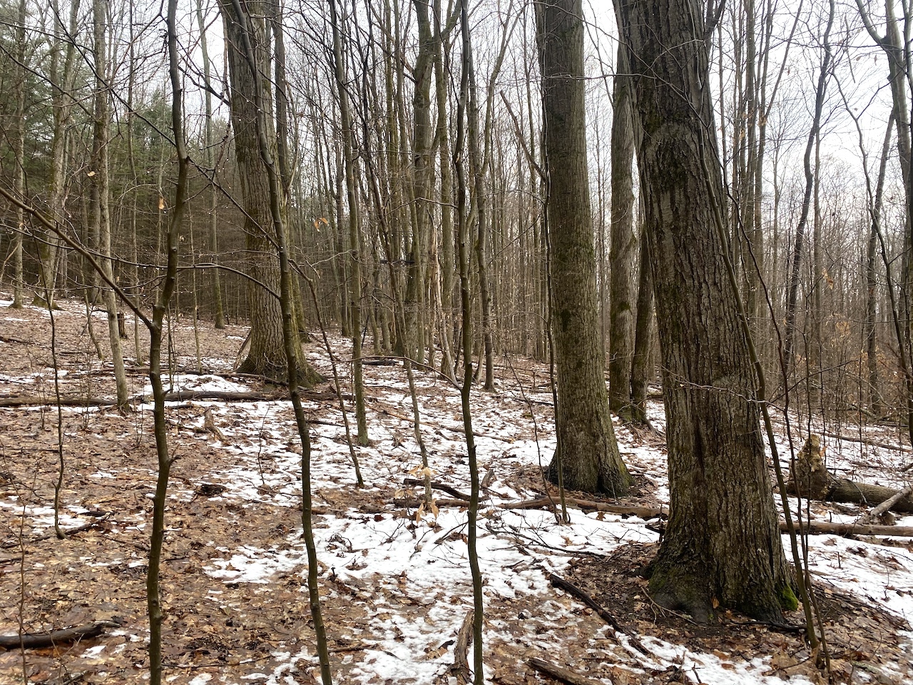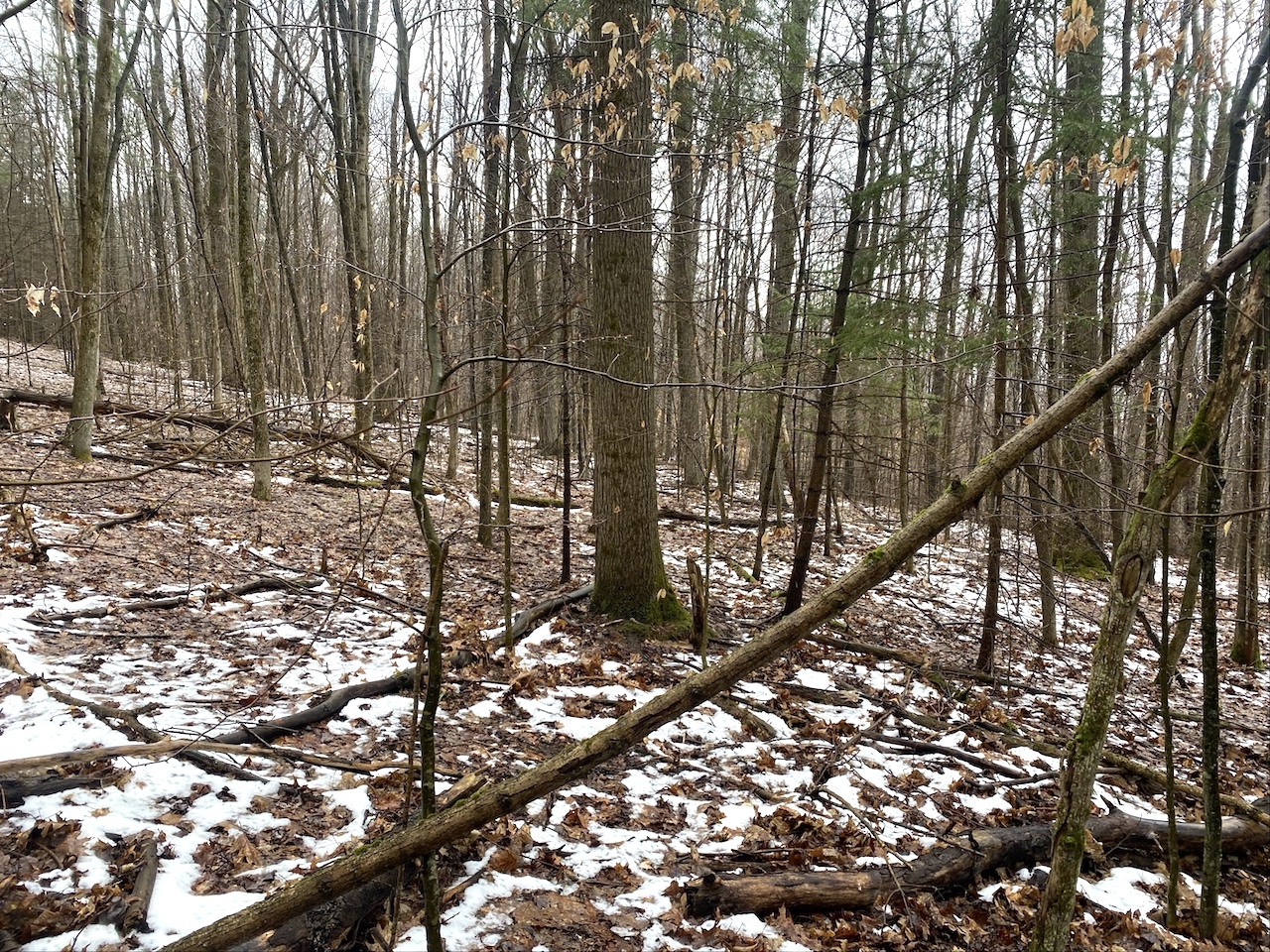 The 6.9 acres consist of mature woods with a mix of hardwoods and evergreens and gently sloping terrain that provides good wildlife habitat and natural cover. Three tree stands are already in place and will convey with the sale.