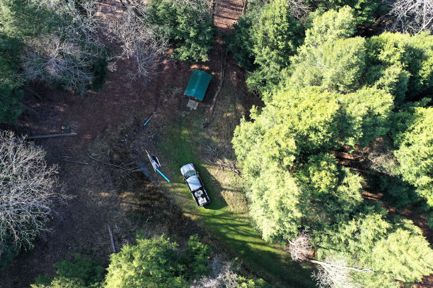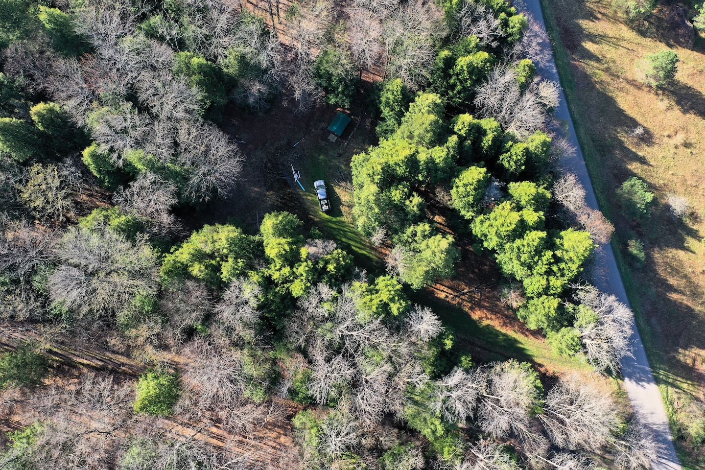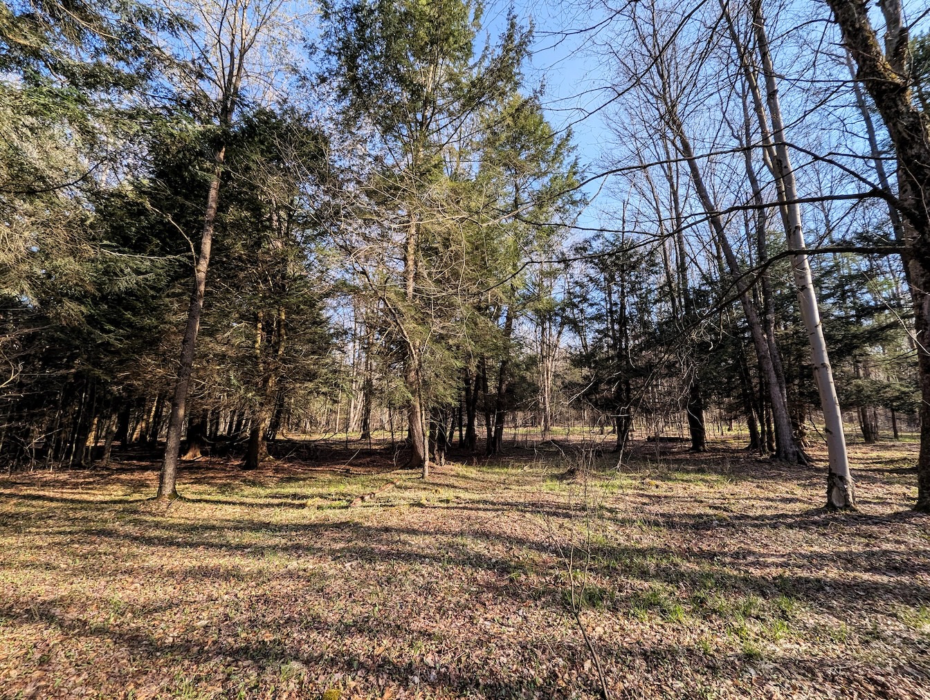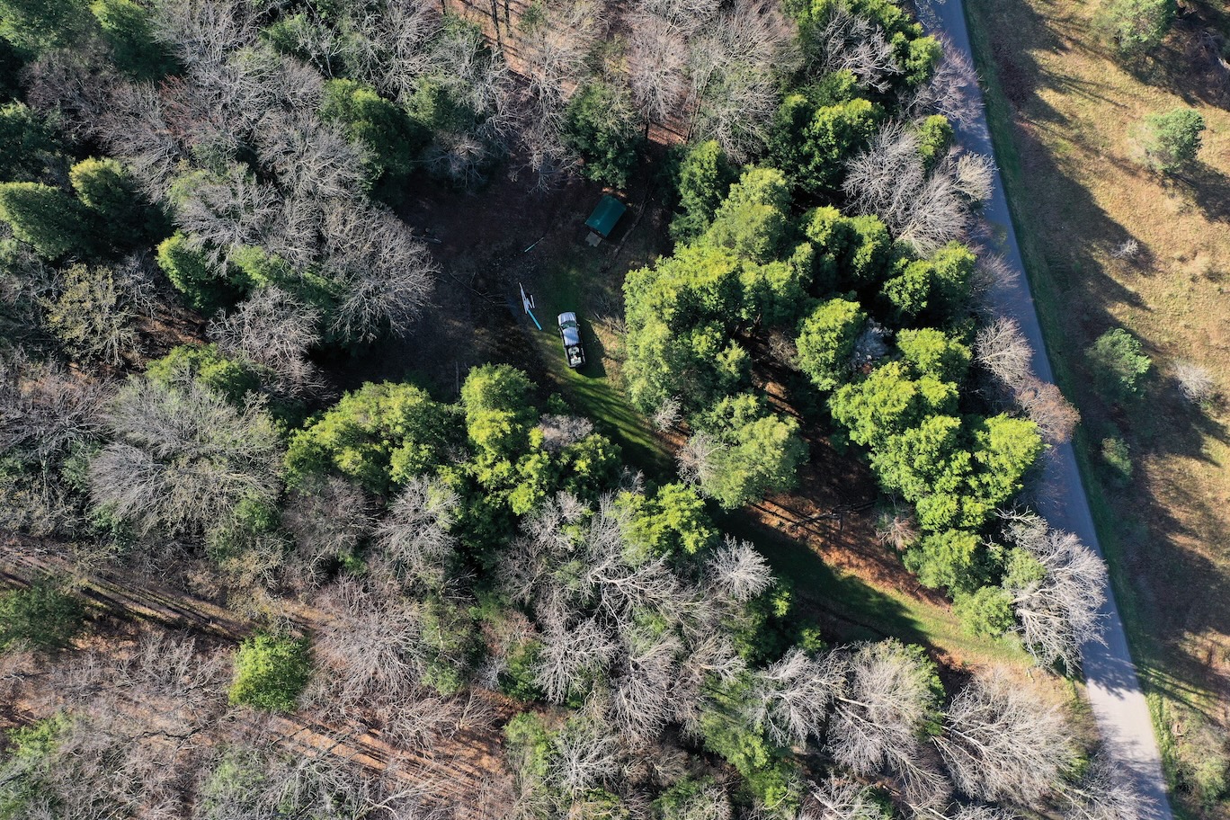 Tucked along a quiet, maintained paved road, this private parcel offers an ideal setting for a recreational getaway or future cabin site. An existing driveway enters from the northwest corner and winds approximately 250 feet through the woods leading to a secluded clearing surrounded by mature timber. This hidden opening provides an excellent location for a camp, cabin, or RV setup. A small shed is already in place for storage. While electric is not currently available at the road, it is accessible roughly 1,500 feet away.