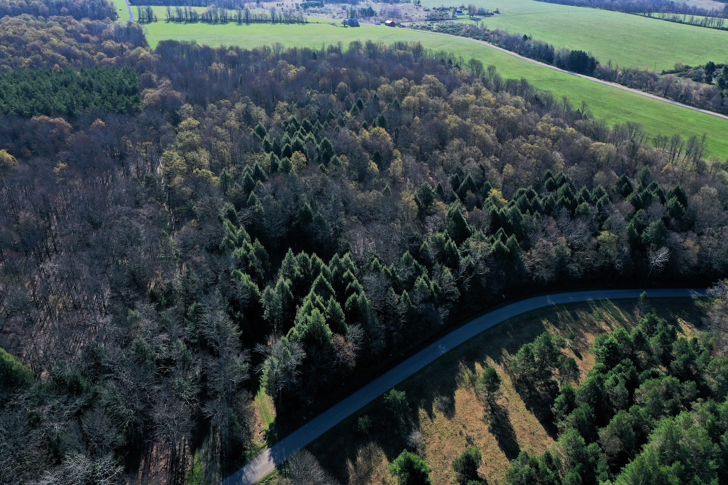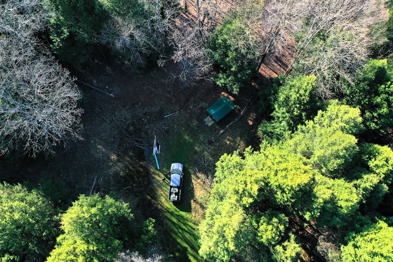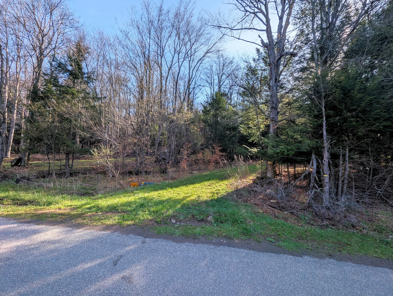 Tucked along a quiet, maintained paved road, this private parcel offers an ideal setting for a recreational getaway or future cabin site. An existing driveway enters from the northwest corner and winds approximately 250 feet through the woods leading to a secluded clearing surrounded by mature timber. This hidden opening provides an excellent location for a camp, cabin, or RV setup. A small shed is already in place for storage. While electric is not currently available at the road, it is accessible roughly 1,500 feet away.