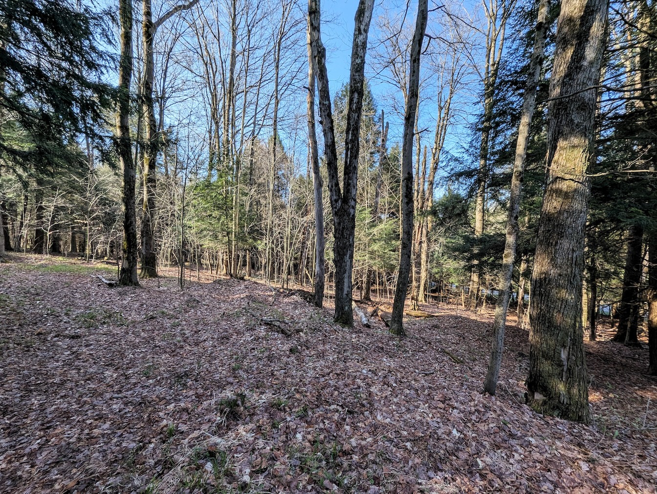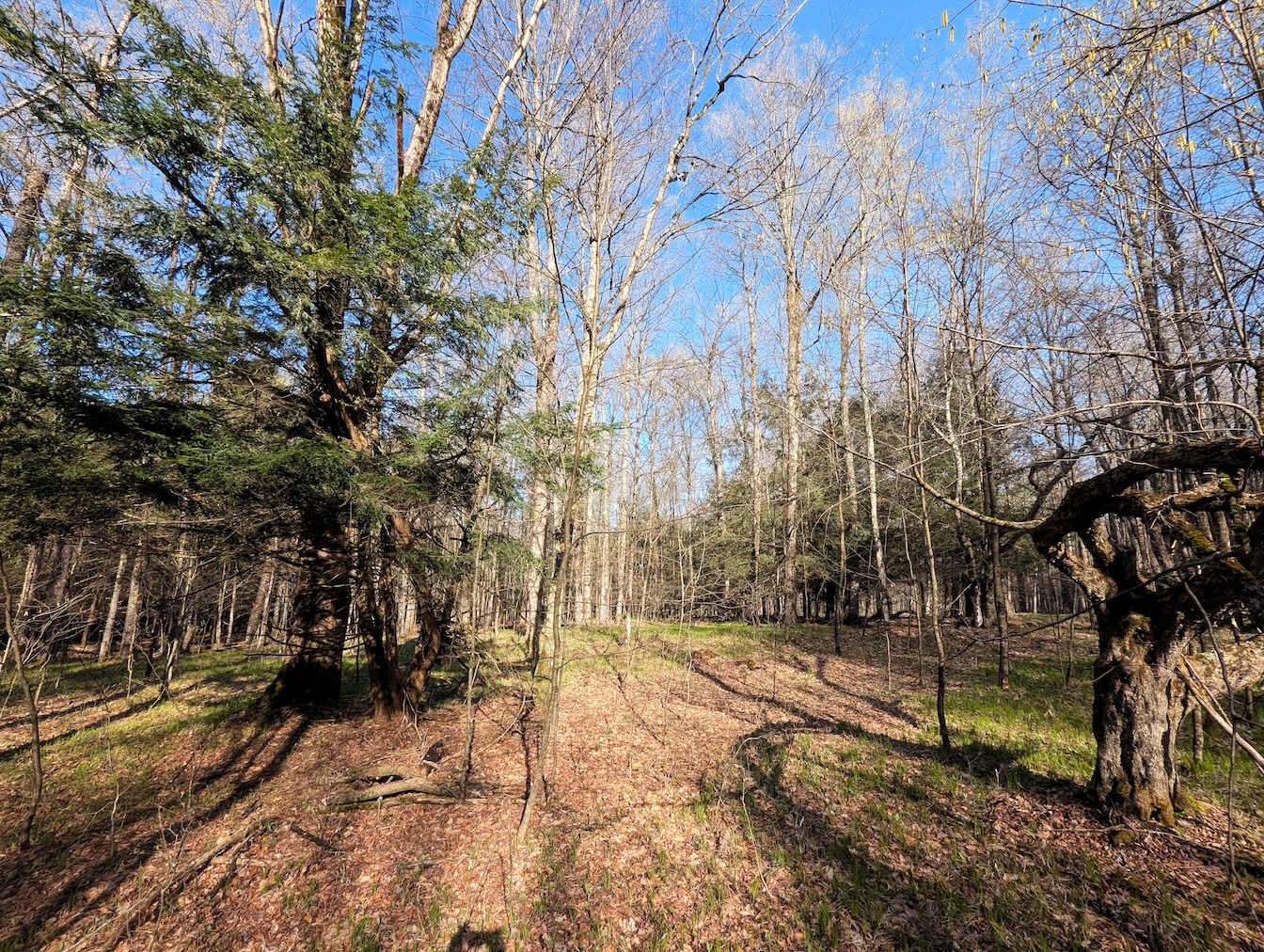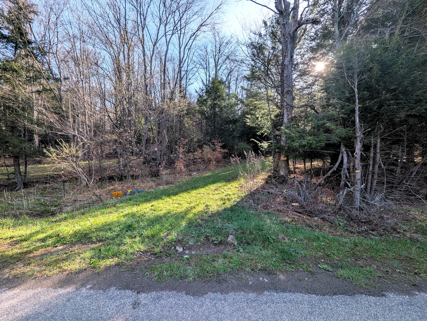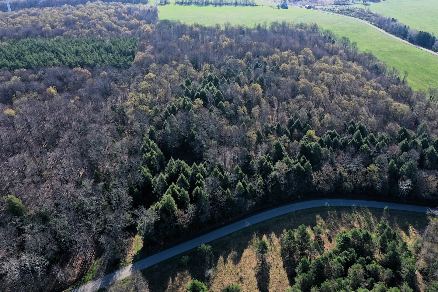 Tucked along a quiet, maintained paved road, this private parcel offers an ideal setting for a recreational getaway or future cabin site. An existing driveway enters from the northwest corner and winds approximately 250 feet through the woods leading to a secluded clearing surrounded by mature timber. This hidden opening provides an excellent location for a camp, cabin, or RV setup. A small shed is already in place for storage. While electric is not currently available at the road, it is accessible roughly 1,500 feet away.