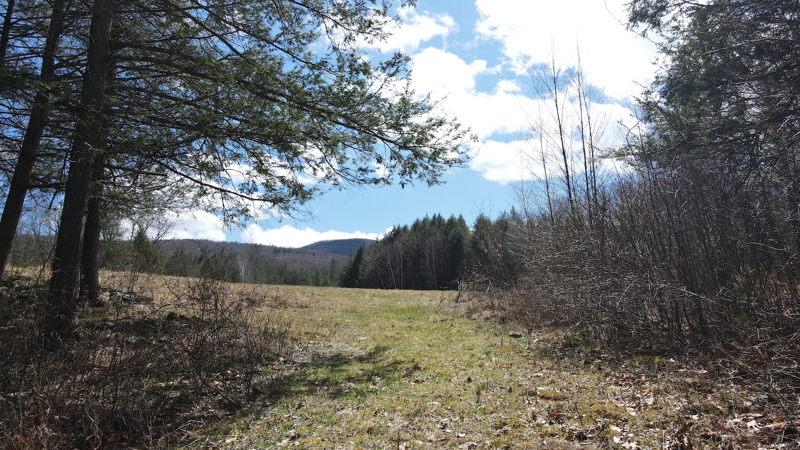 The sloping land includes riparian woodland, mature coniferous and deciduous forest, 12 acres of meadow and pasture, two streams, a natural spring, and exceptional biodiversity. The combination of cover and open meadow provide habitat for abundant wildlife, including deer, bear, turkey, and small game. A recently built woven wire livestock fencing encloses approximately 6 acres of pasture. Frontage is on a year-round gravel town road.